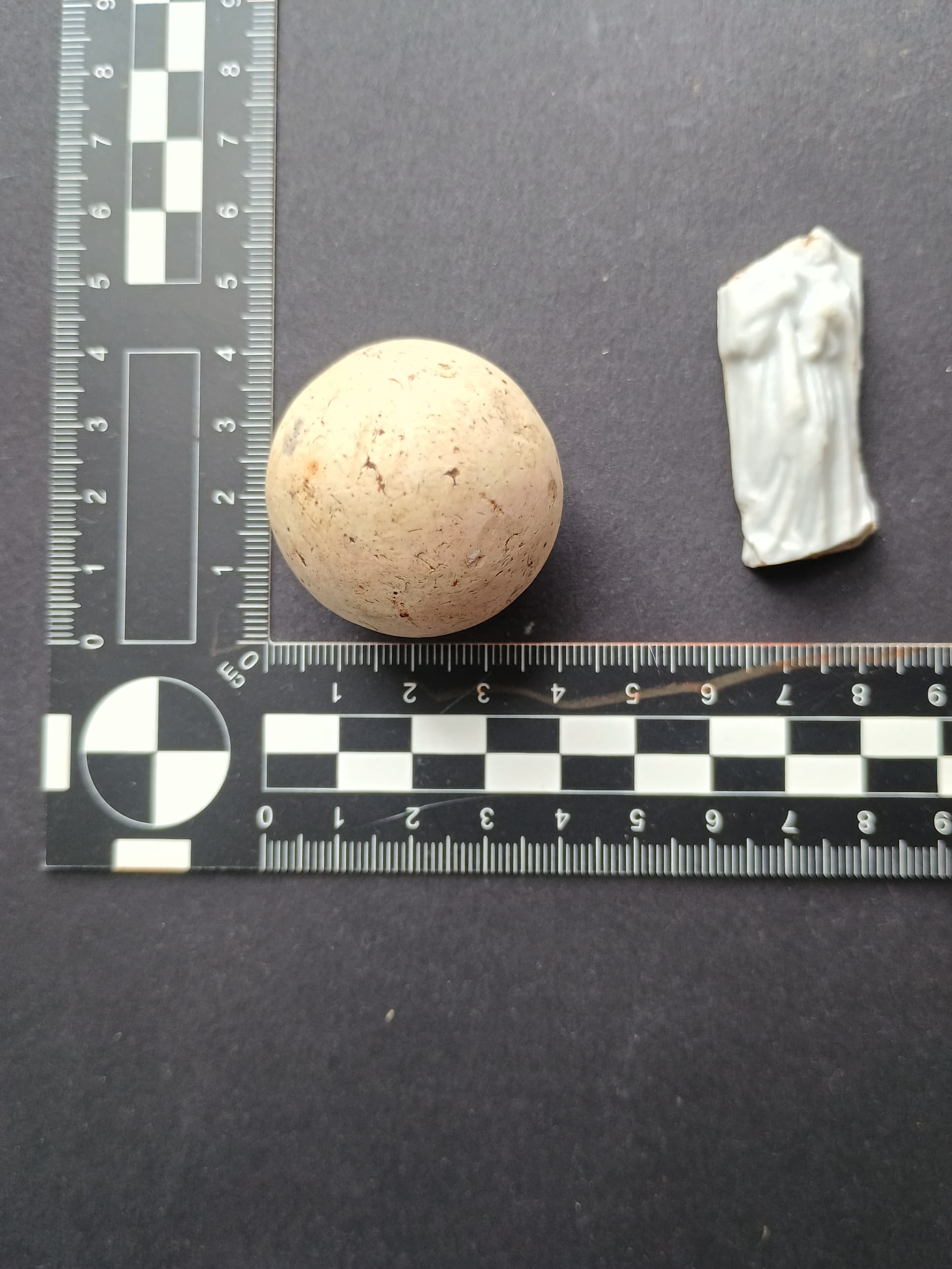 Und eine groooooße Murmel. Weiß nicht ob man bei der größe (fast 4cm Durchmesser) noch von Murmel spricht, aber sie hat die typische Beschaffenheit einer Murmel. Im ersten Moment dachte ich an ein Bleigeschoss, aber war dann schnell klar dass es keins ist.
