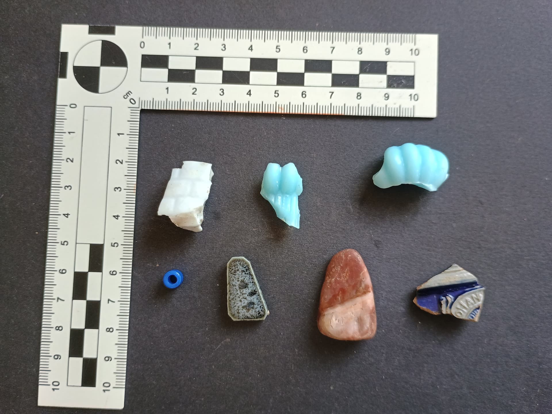 oh, so ein schönes Hellblau! Ist schon lustig, was man oft so findet, auch wenn in euren Feldern mehr Diversität herrscht als bei mir hier, da liegen ja nicht mal viele Ziegel oder NZ-Mist, geschweige denn Kerzenhalter oder Johanns Bierkrug (wie das wohl hergegangen ist? Ob seine Frau vielleicht …