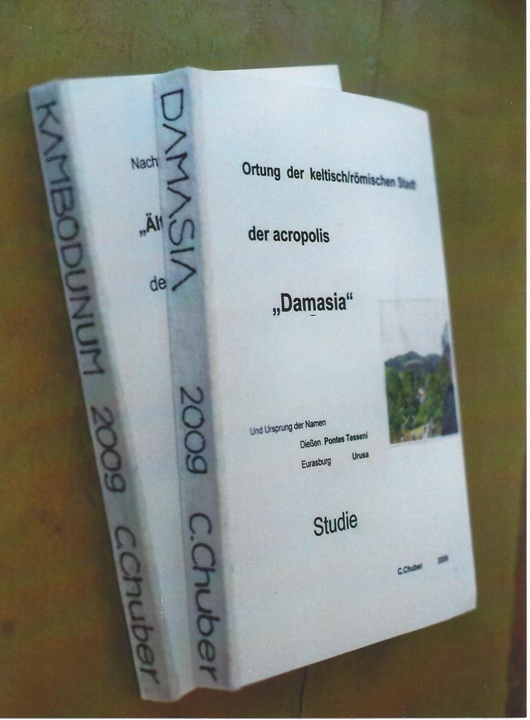 Christian Chuber Das Verständnis von Damasia ist bislang ausschließlich umwölkt von spärlich verfügbar lexikalischen Nachschlagsprengseln und autoddaktischem Keltenromantizismus. Speziell im deutschen Alpenvorland, behandelt wie jener Enzian, der sich hoch oben irgendwo zwischen Felsungetümen als einzelner Gartenzweg befinden soll, den zu finden sich eine Vielzahl von Eiferern anspekulieren. Derart erhitzt, auch angespornt von Behörden, lassen diese nur ihre Werkzeuge gelten, wobei dann Wissenschaft keine Rolle mehr spielen soll: Denn die Erfahrung zeigt leider, dass wissenschaftliches Argumentieren, selbst Nachweise auf Spott und Hohn stoßen. Chuber wollte und sollte dem ein Ende bereiten, denn Geheimniskrämerei oder Sagenschwulst, Spötterei und regionaler Kitsch arbeitete bereits 2008 auf die real geplante und mit krimineller Energie betriebene amtliche Vernichtung der gesuchten Örtlichkeit in Gestalt des Auerberges zu. Also wies er nach seiner Studie “Älteste Stadt Deutschlands” im Januar 2009 über die Studie “Ortung der keltisch-römischen Stadt Damasia” im März/April 2009 diese gesuchte Stadt nach, siehe Anhang. Mit dem “Erfolg”, dass Spott und Hohn sich vermehrten und 2011 in Plagiaten endeten. Gerne stellen sich die dabei Beteiligten begriffsstutzig, können eins und eins nicht zusammenzählen, stellen Fragen dreifach und trotz Antworten immer aufs Neue wieder, als wäre ihr Gedächtnis ein Sieb, um dann im Gegenzug frivol und grinsend zu behaupten sie hätten es erfunden. Oder, man tut als hätte es nie eine Studie gegeben. Insofern wäre für größere Kreise wie hier das Forum ein Blick in die Studie höchst empfehlenswert, wobei das Problem der Bezahlung dieser Arbeit besteht. Sie kann nicht kostenlos zur Verfügung gestellt werden: Es sei an die Plagiatoren der Gemeinde Bernbeuren erinnert, die genüsslich auf weitere Plünderung warten.