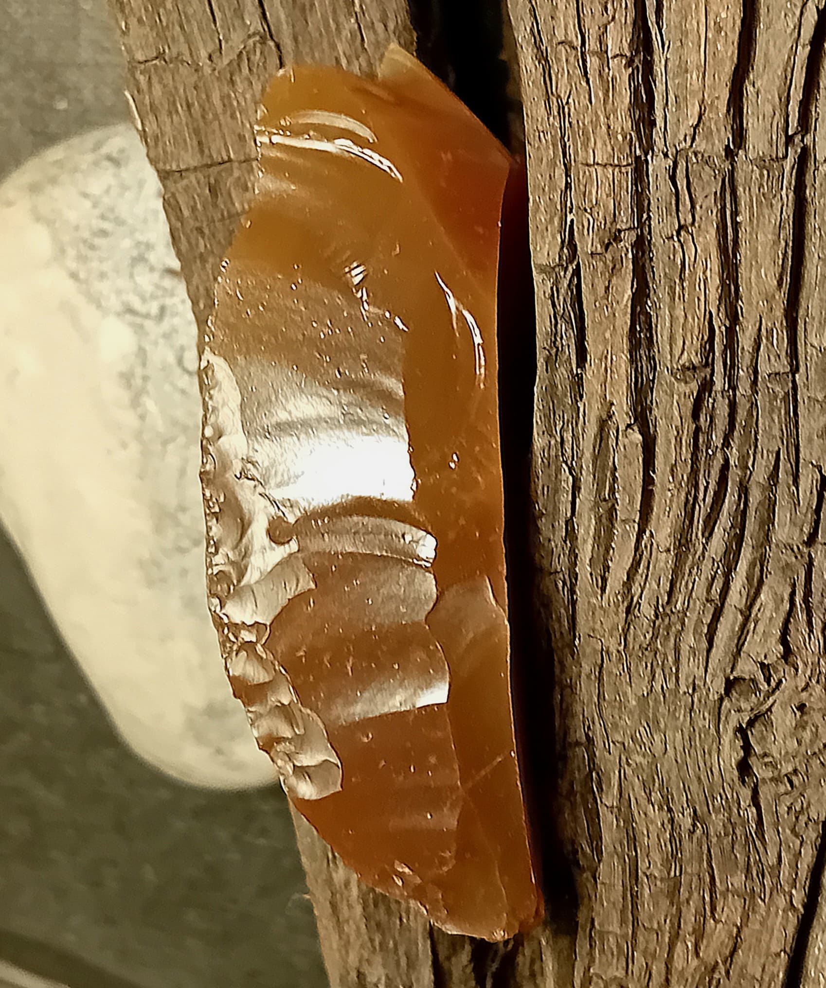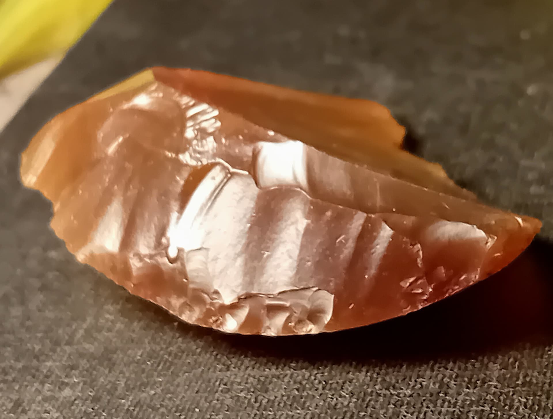 Würde man die Pseudoretusche als Arbeitskante (Kratzer) definieren, tritt derselbe Effekt auf – egal an welcher Seite ich das Ding anfasse, ich kann es nicht festhalten, es ist schlicht zu glatt und gleitet mir aus der Hand.