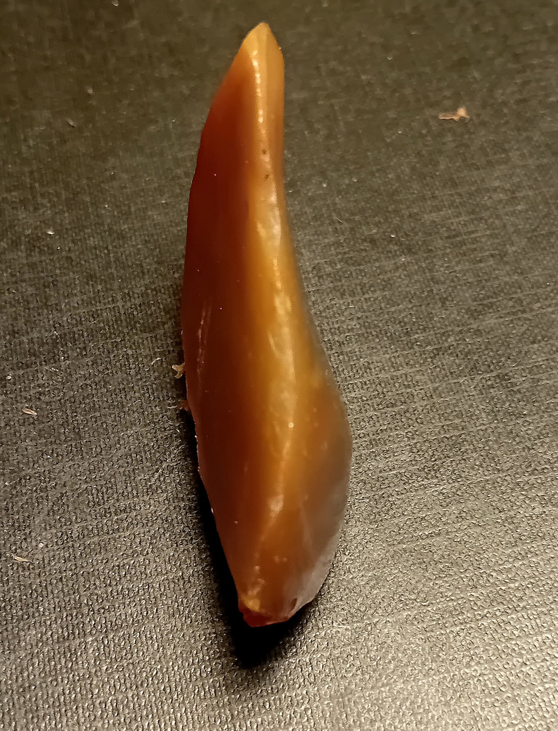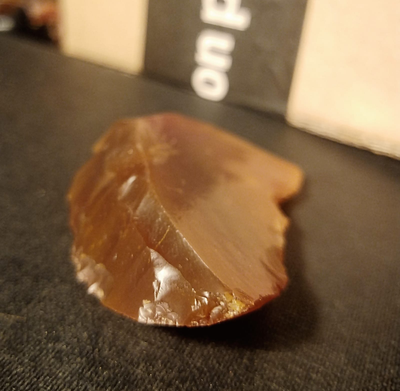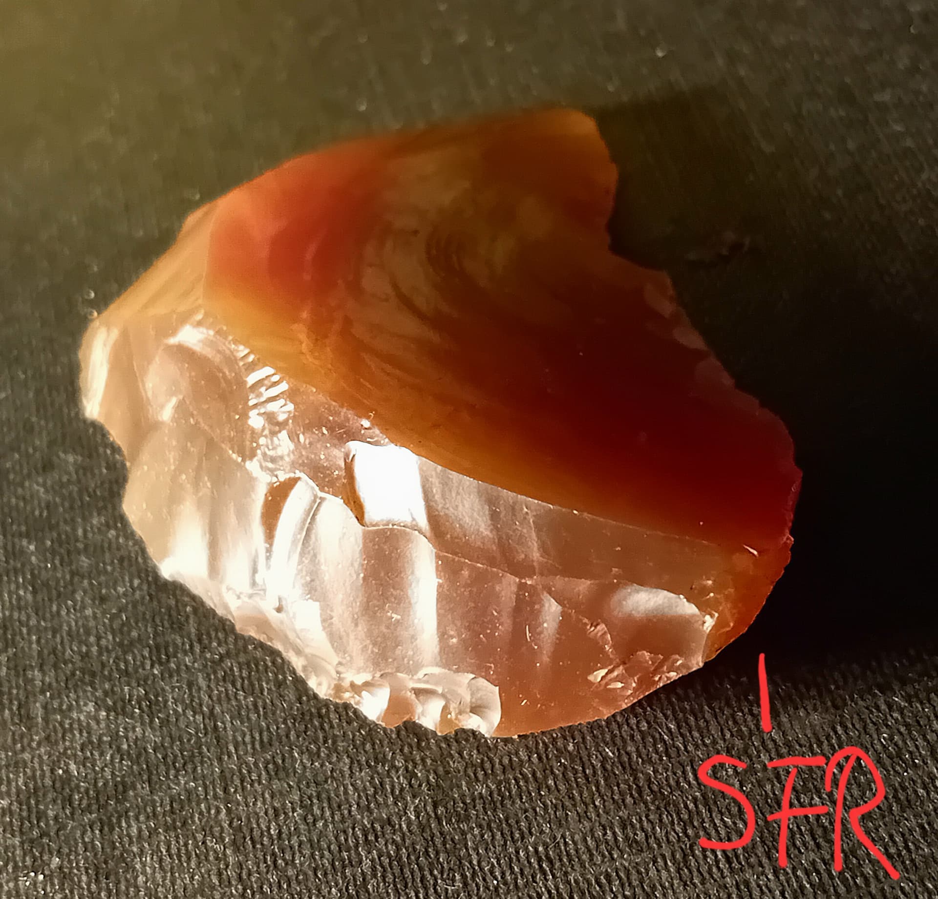 Da die der Pseudoretusche gegenüberliegende Kante durch die beiden Frostsprünge scharfkantig geworden ist, wären sie als Schneide zu gebrauchen. Diese scharfe Kante weist einige Aussplitterungen auf. Unter meinem Binokular (30 bis 70-fache Vergrößerung) sind keine Gebrauchsspuren (Riefen) zu sehen – dies trifft auf alle Kanten zu. Das ist für mich das stärkste Indiz für meine Beurteilung, dass es sich um ein Geofakt / Pseudoartefakt handelt.