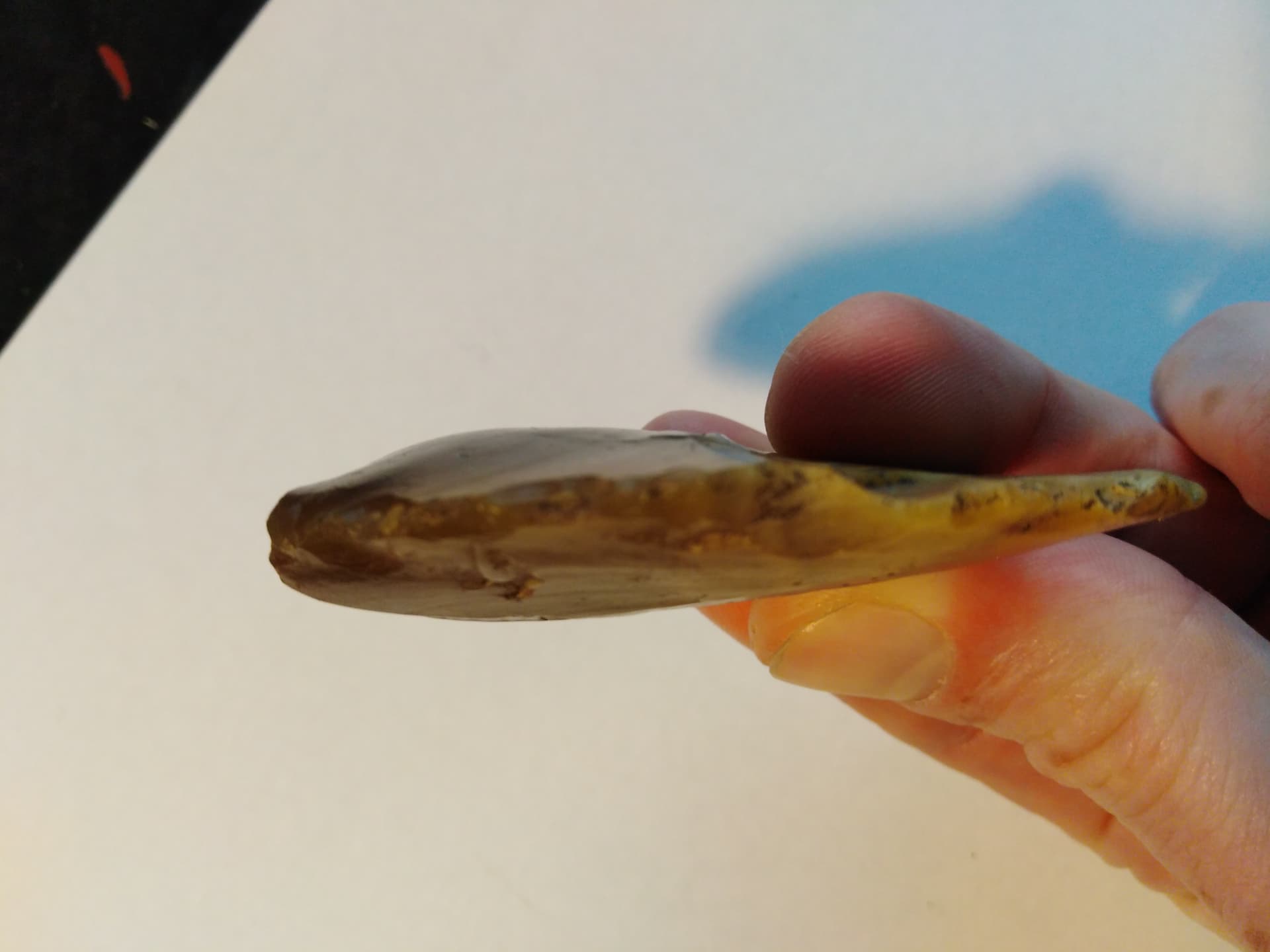 Wie bereits erwähnt, habe ich aber tatsächlich mal eine altsteinzeitliche Klinge gefunden und diese von der Silex Expertin im Landesamt für Archäologie Leipzig bestimmen lassen und die möchte ich wenigstens mal kurz zeigen
