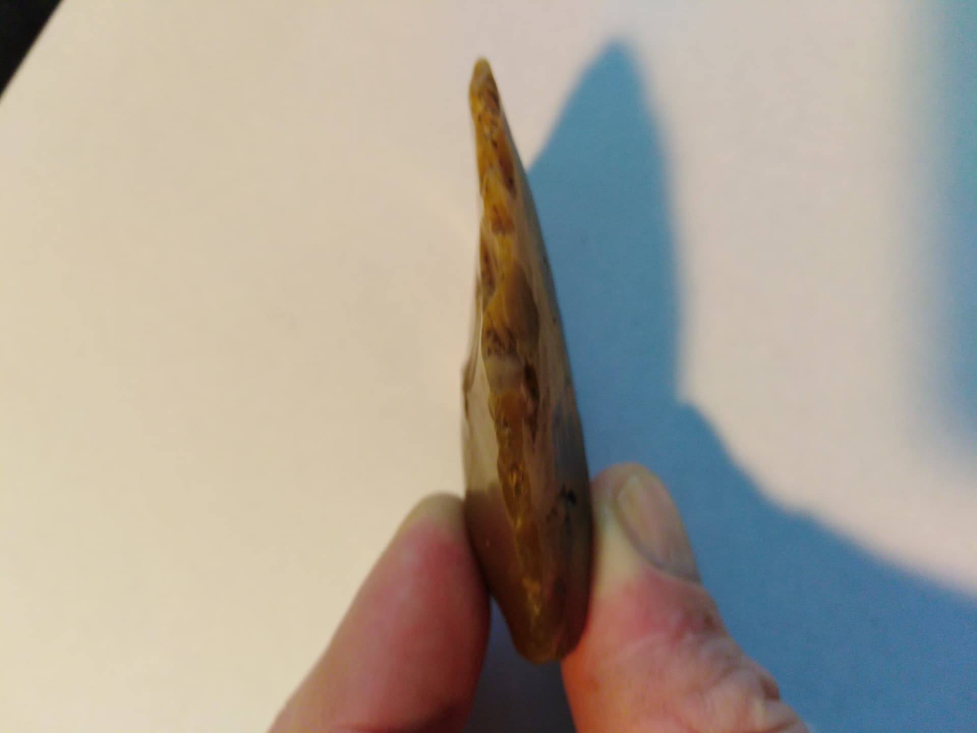 Hier möchte ich doch noch kurz was sagen, auch wenn zumindest du, Shard und ich wirklich von einem Abschlag ausgegangen sind. Gestern hab ich auch dem YT-Kanal der Prehistoric Guys (sehr empfehlenswert, aber auf Englisch. Wen es interessiert, hier der Link dazu: https://www.youtube.com/watch?v=lS5M_7w6FGY) ein Video mit Dr. James Dilley, einem Silex-Experten und flint knapper, gesehen, in dem er erklärt, wie man Artefakt von Geofakt unterscheidet. Jetzt werdet ihr sagen: “Liebe Inez, das erklären wir dir ja auch schon seit einem Jahr!” Und recht habt ihr. Trotzdem war das interessant, weil er auch recht anschauliche Stücke gezeigt hat. Worauf ich aber rauswill - und das fand ich absolut einleuchtend -: Er erzählte, dass ihm Leute natürlich auch immer wieder Stücke zeigen, die man wirklich für ein Artefakt halten könnte, die es aber nicht sind. Und er hört dann immer wieder: “Hätte ein Mensch damals nicht diesen Stein trotzdem aufheben und für eine bestimmte Tätigkeit verwenden können, er liegt doch so schön in der Hand, hat eine Spitze etc.?” Worauf er i. d. R. antwortet, dass das mit ziemlicher Sicherheit nicht so ist, außer, jemand hat gerade einen Stein gebraucht, um etwas zu zerquetschen. Er meinte auch, dass ein richtiges Werkzeug in Nullkommanichts angefertigt werden konnte, wenn man die Fähigkeiten und die Erfahrung hatte, warum also sollte man stattdessen einen Stein benutzen, der so ähnlich wie ein Werkzeug aussieht, wenn man in 20 min eine Handaxt anfertigen kann.