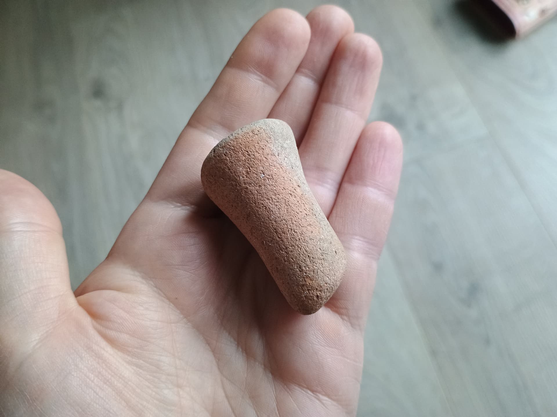 Hart gebrannt, viele Magerungspartikel bis 1mm. Glasurreste sind nicht erkennbar. Wenig Glimmer. Ist es diesmal wirklich ein Grapenfuß? In welche Zeit würdet ihr ihn einordnen?