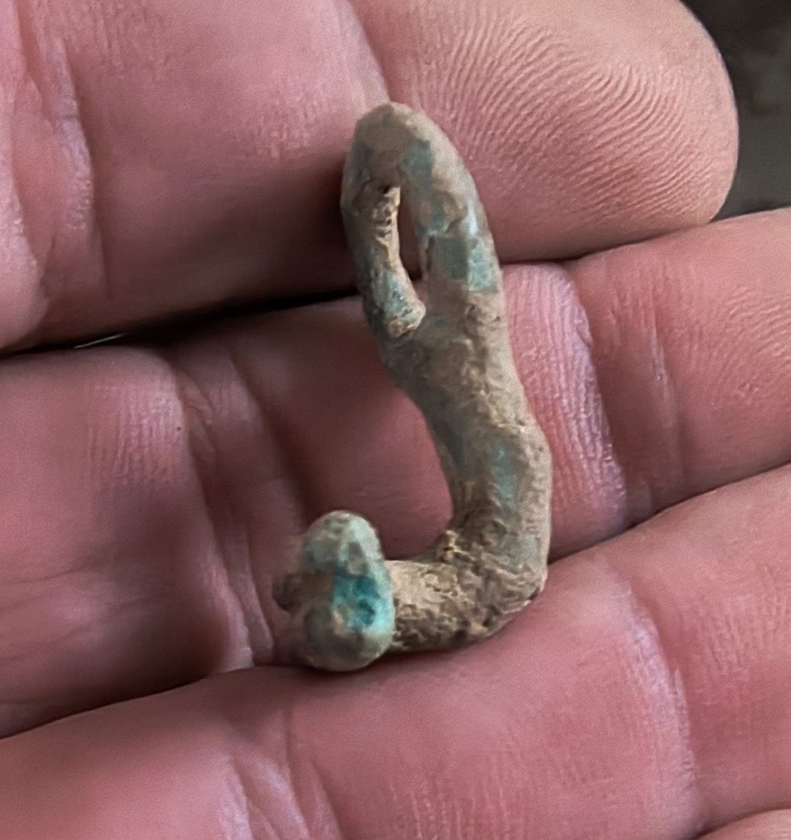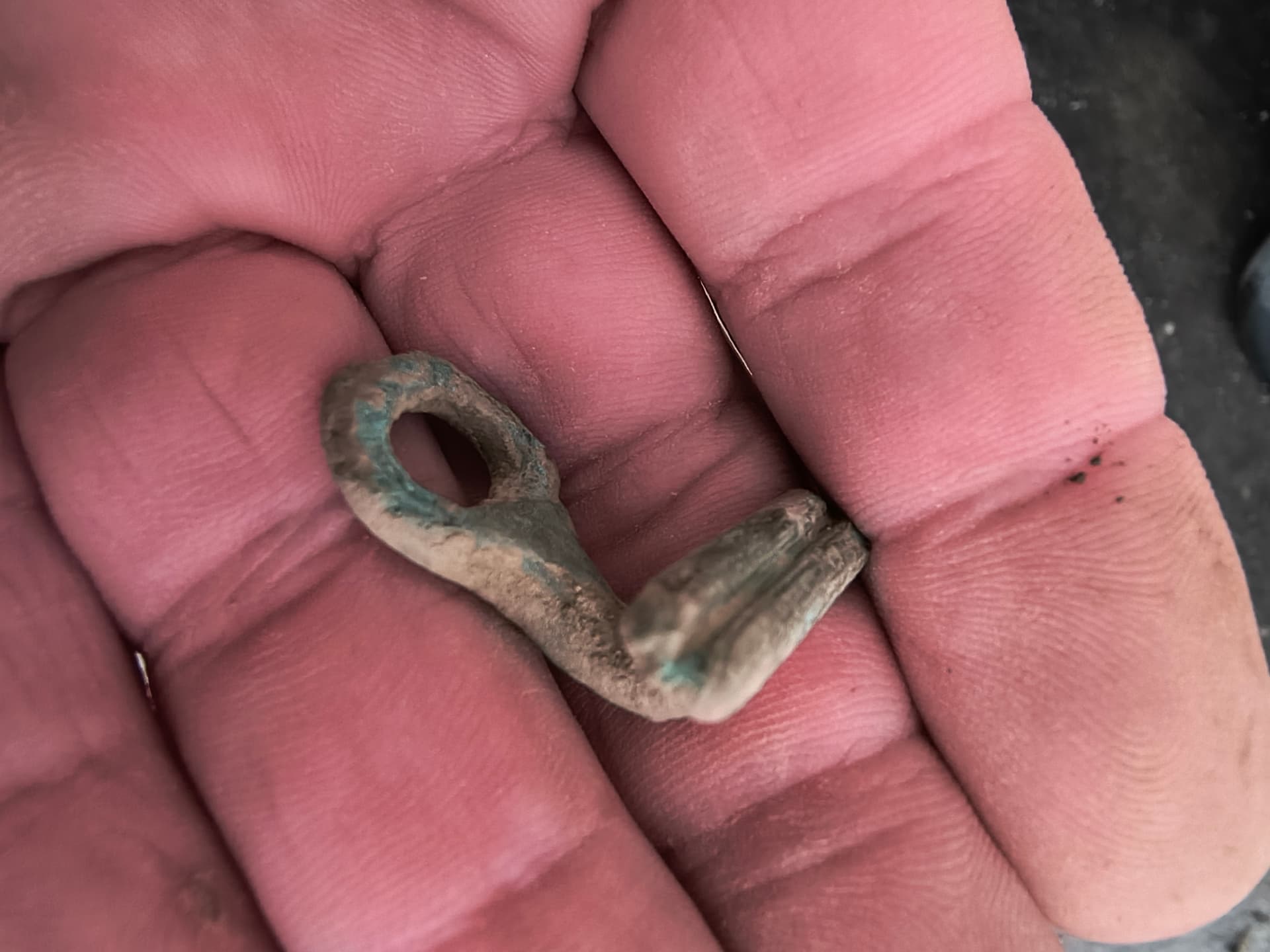 Das Teil wurde auf der Ausgrabung, wo wir auch den Mühlstein entdeckt, beim sondeln gefunden.