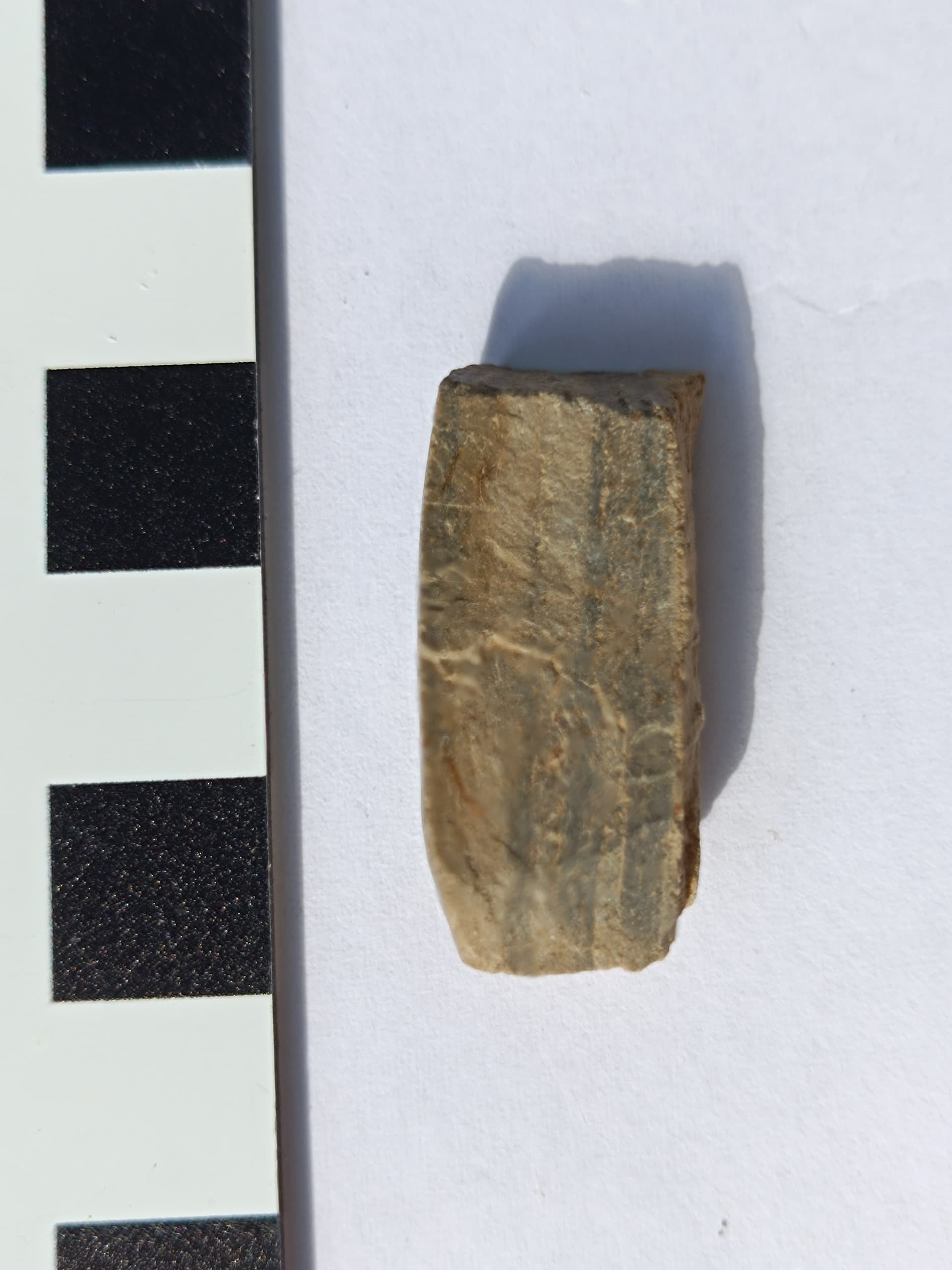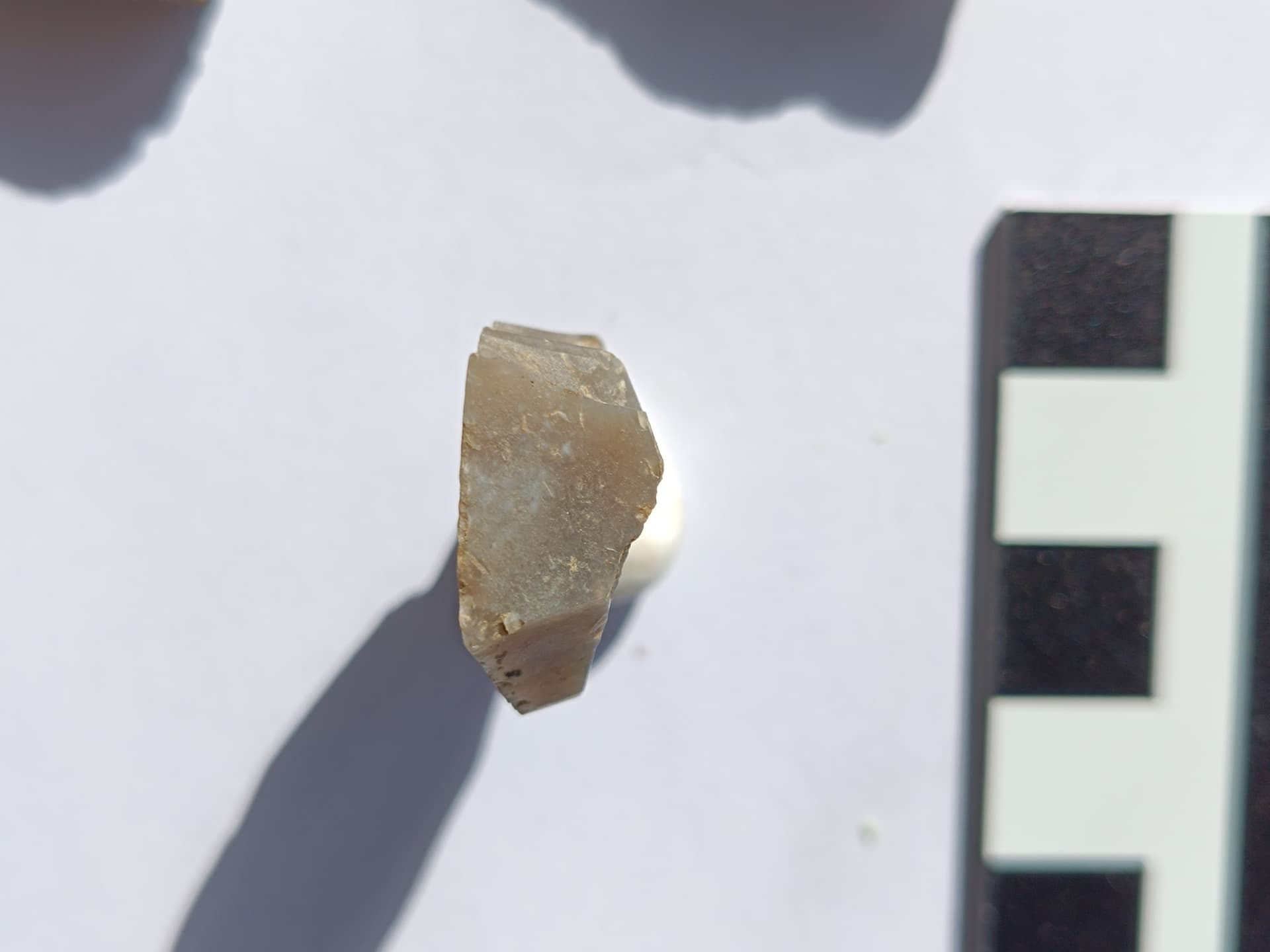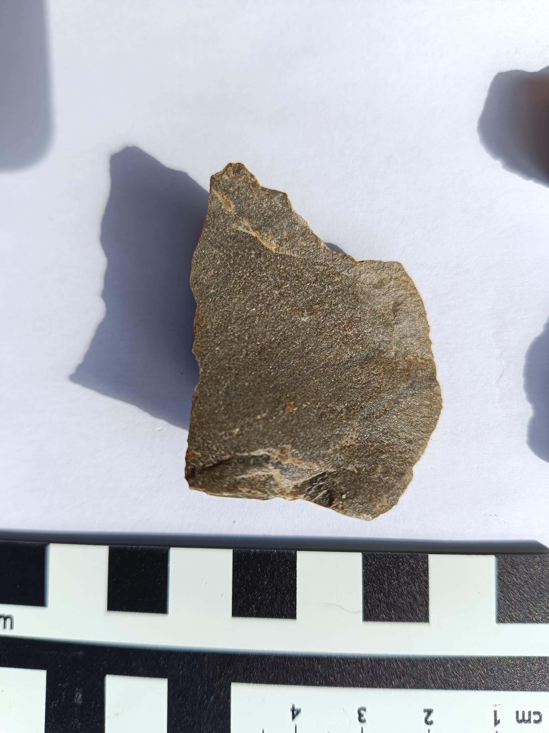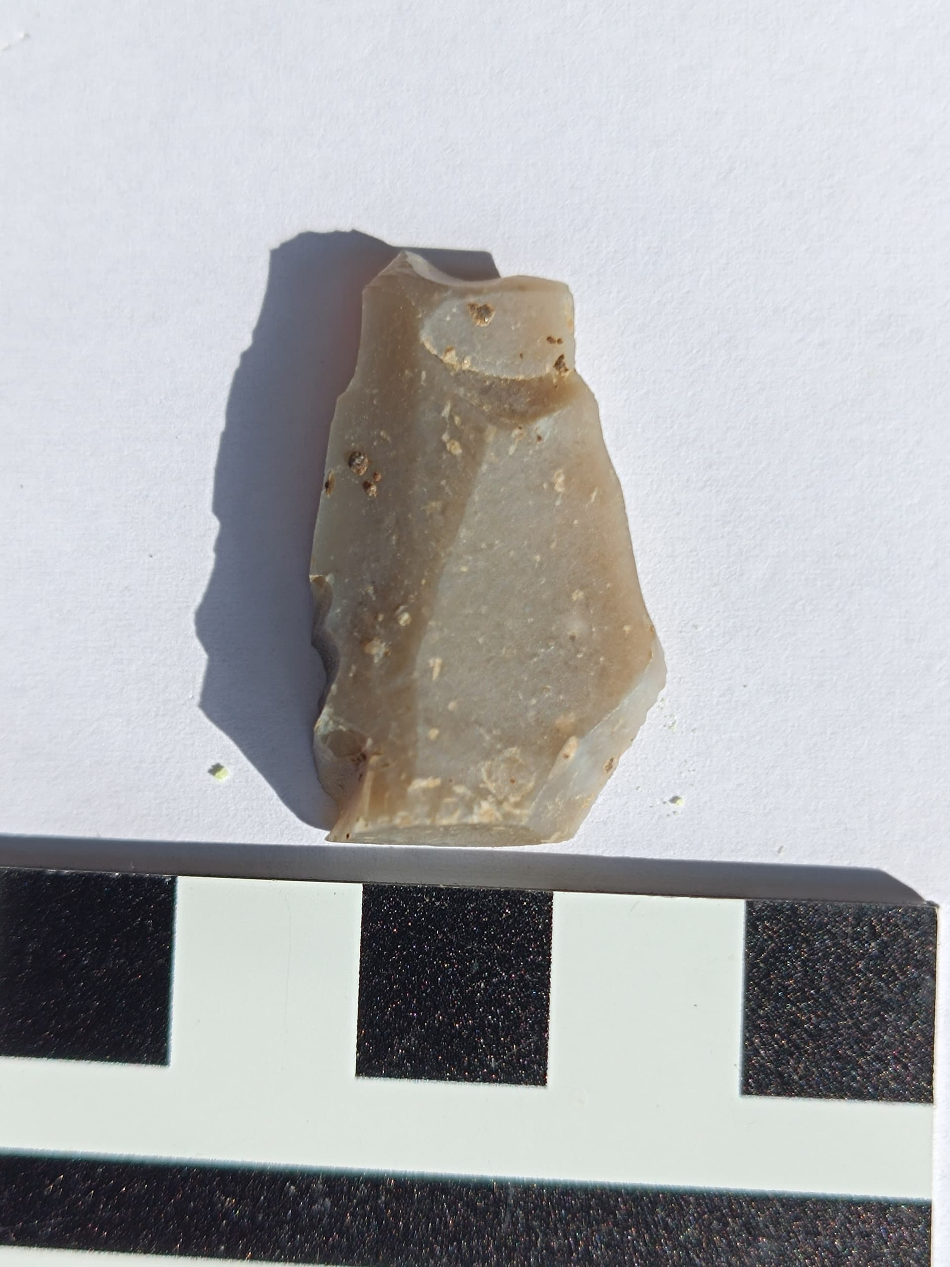 Es lässt sich ein Schwerpunkt ausmachen, der liegt in einer Mulde in leichter Hanglage Richtung Westen, sehr nahe des mutmaßlichen Grabens, und innerhalb der Anlage. der Rest ist sicher mit dem Pflug verzogen worden. Oben auf der Hügelkuppe und in Nähe der geradlinigen Begrenzung liegen recht viele Silexknollen, aber alles nicht bearbeitet, auch keinerlei Abschläge. Keramik so gut wie keine, und das bisschen scheint Hochmittelalter zu sein. Von einem einzigen Gefäß, wie mir scheint