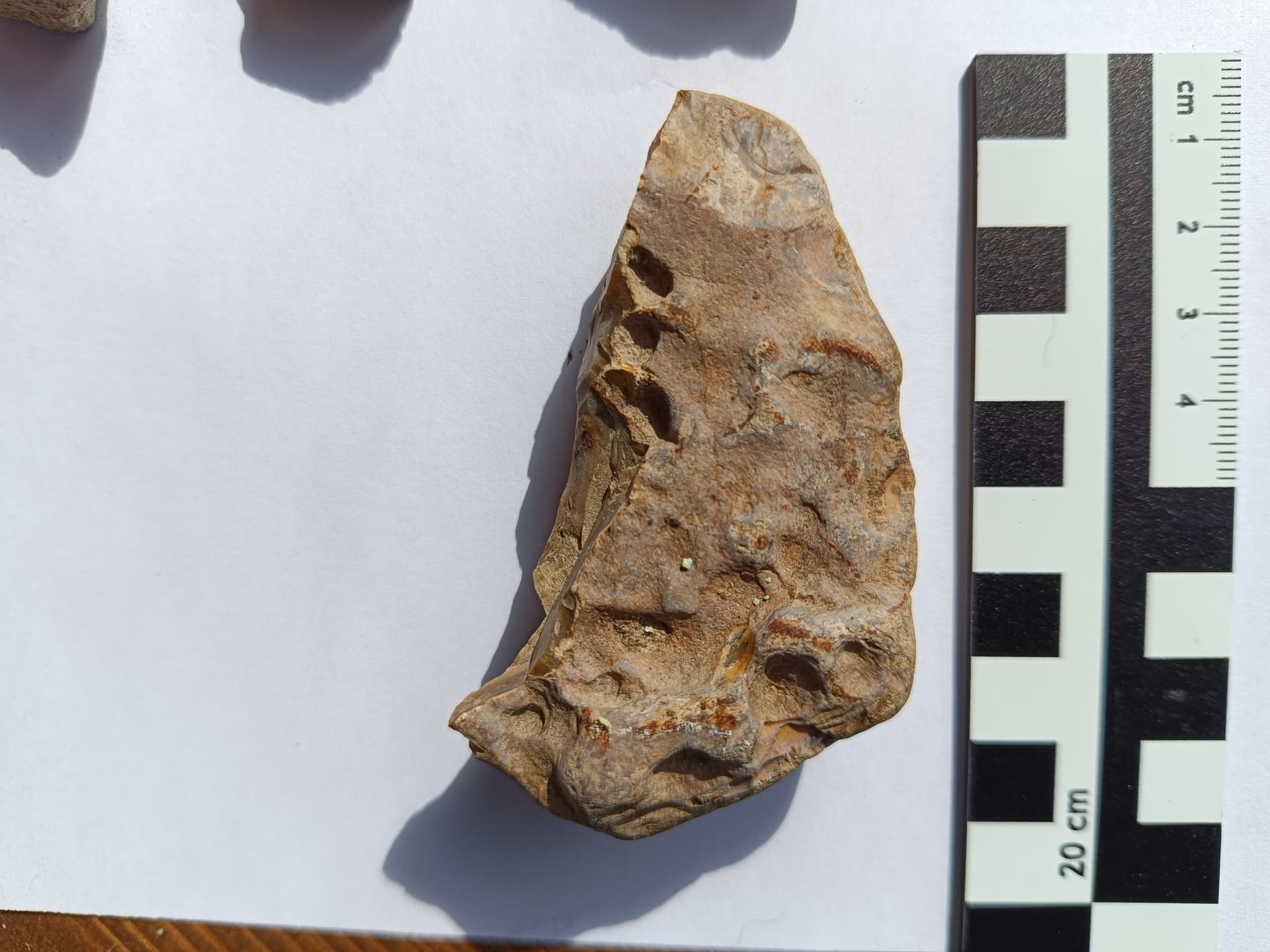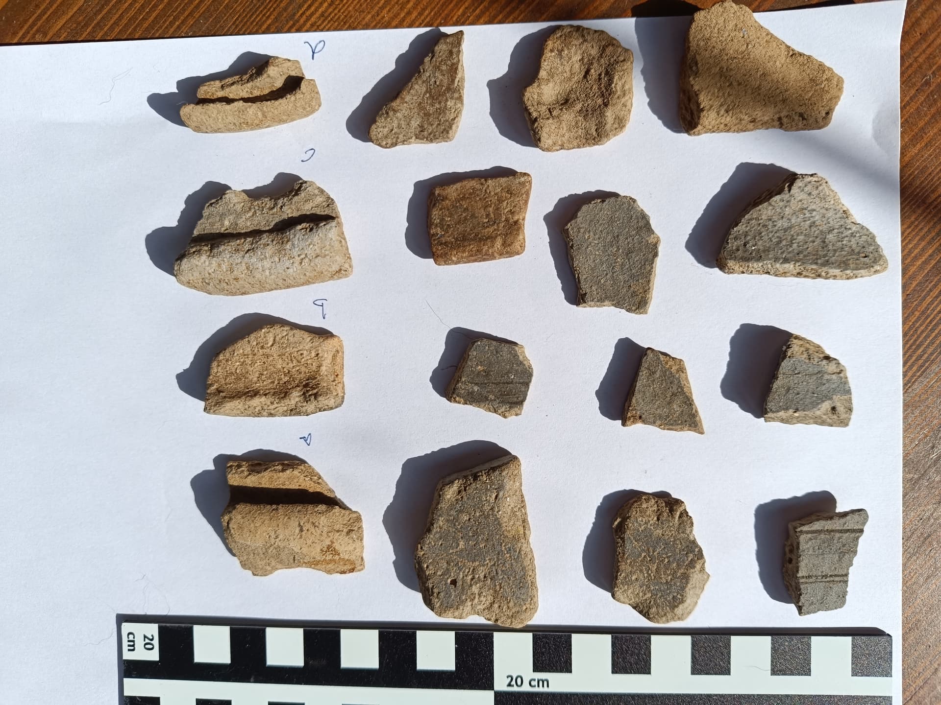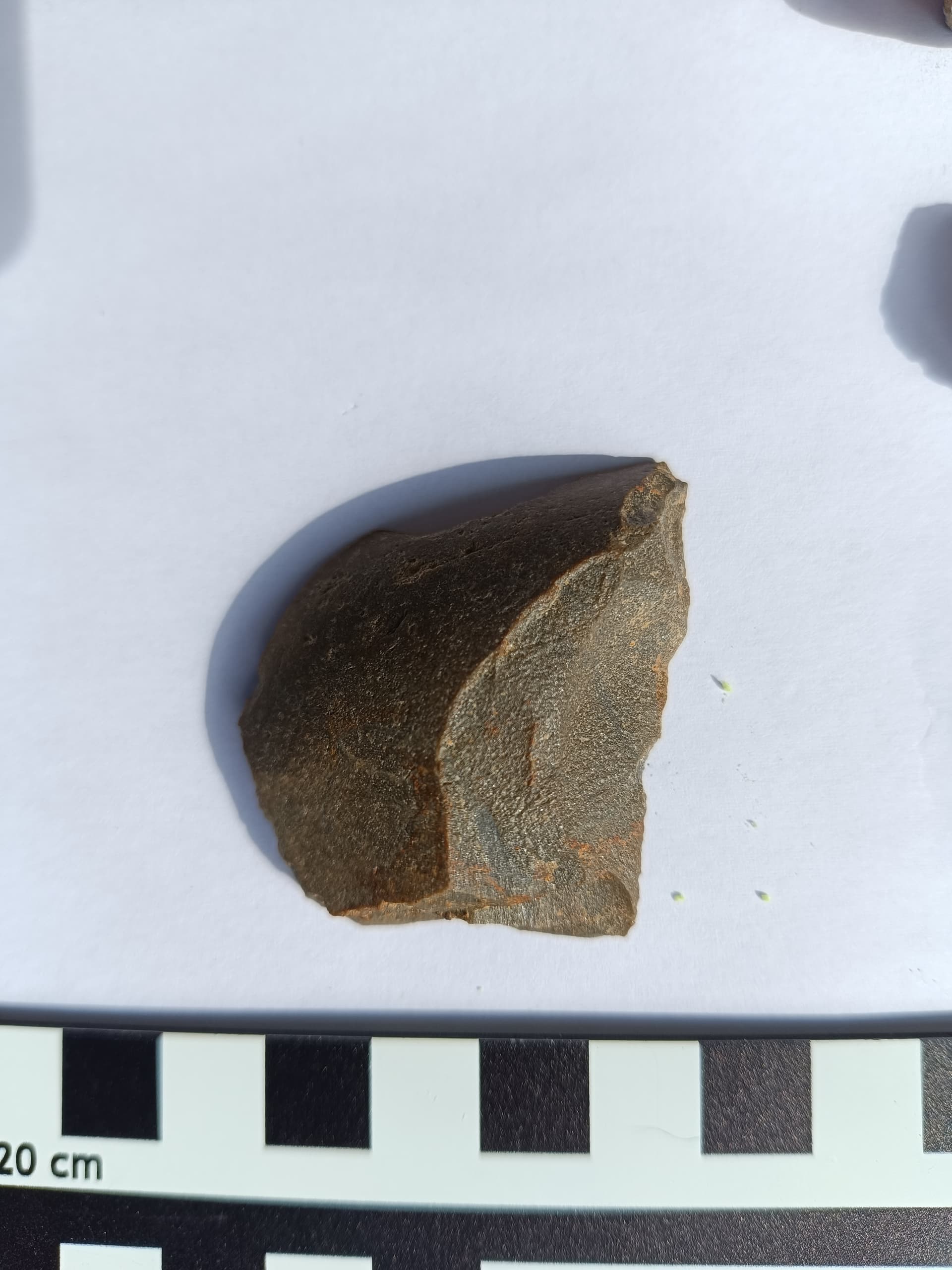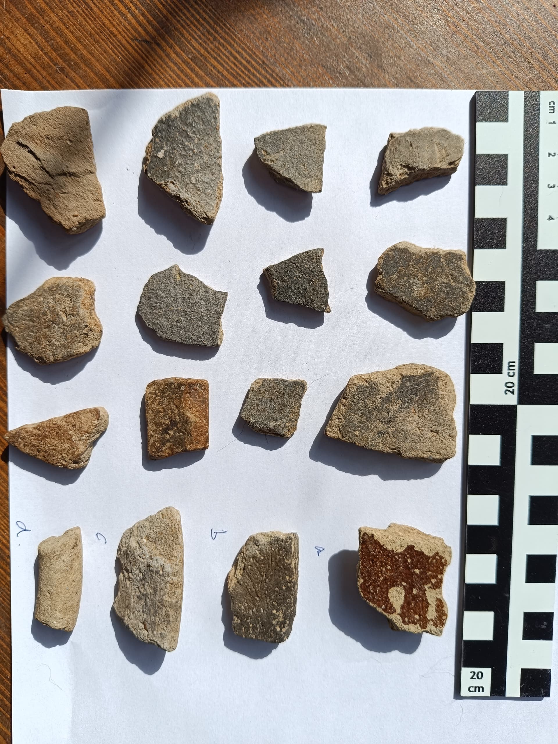 . Ich hab zwar nicht mehr viel Lust dazu, aber heute lauf ich noch die andere Hälfte ab, ist wenigstens Training, aber ich habe kaum Hoffnung, dass sich noch mehr zeigt. An einer Stelle eher Richtung der neuen Hälfte (den unteren Teil am Wald entlang habe ich schon neulich abgelaufen), liegen recht viele Steine, die Brand abgekriegt haben, wie’s aussieht, Granit, der da oben gar nicht vorkommt (der Weg, den der Landwirt in einem benachbarten Feld dort vermutet, ist auch voller Granitsteine und -platten, was ihn eben auch erstaunt hat, weil besagtes Gestein dort eben nicht vorkommt). Dort finde ich aber keine Schlacke etc.