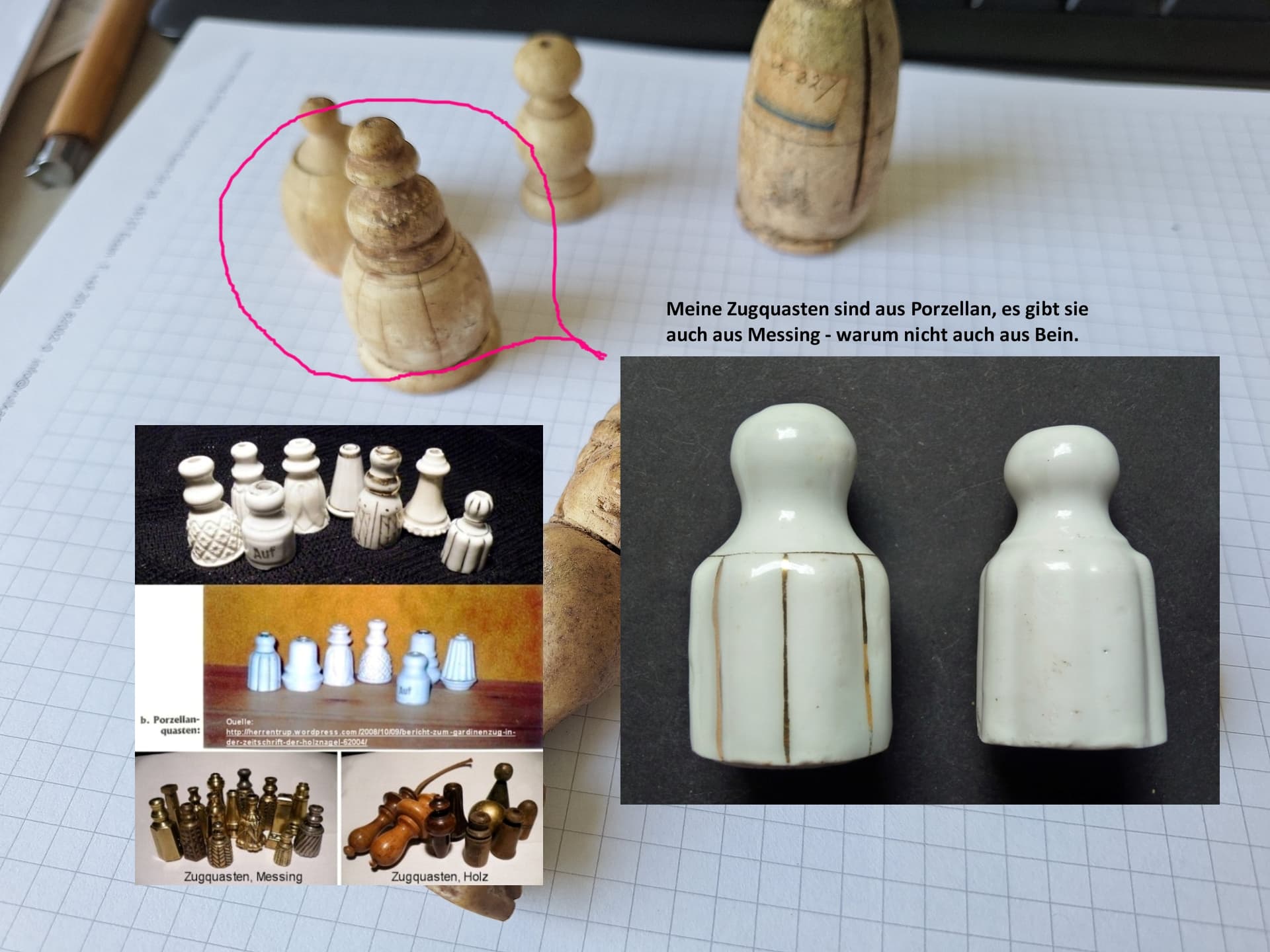 Edit: jetzt sehe ich gerade, dass die Zugquasten oben alle ein Loch haben. Die Beinteile haben keines (deswegen hatte ich gedach, dass es vielleicht im inneren fixiert und mit dem Deckel versclossen würden, aber dann würden sie falsch herum hängen)