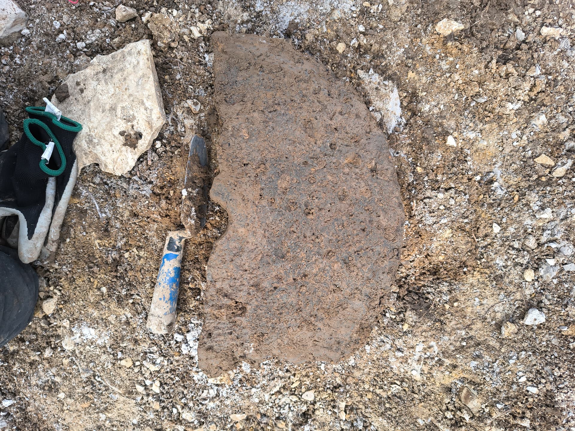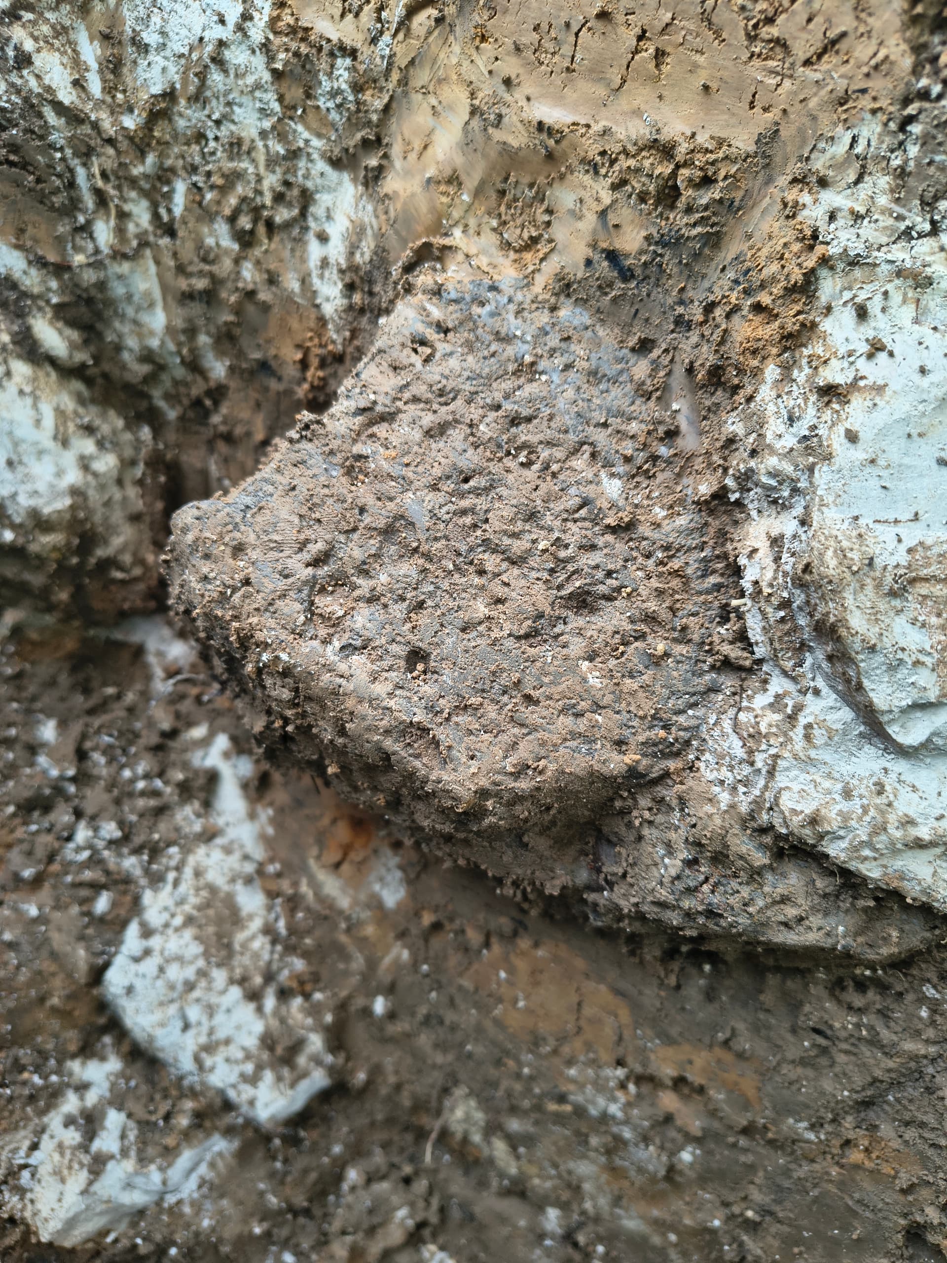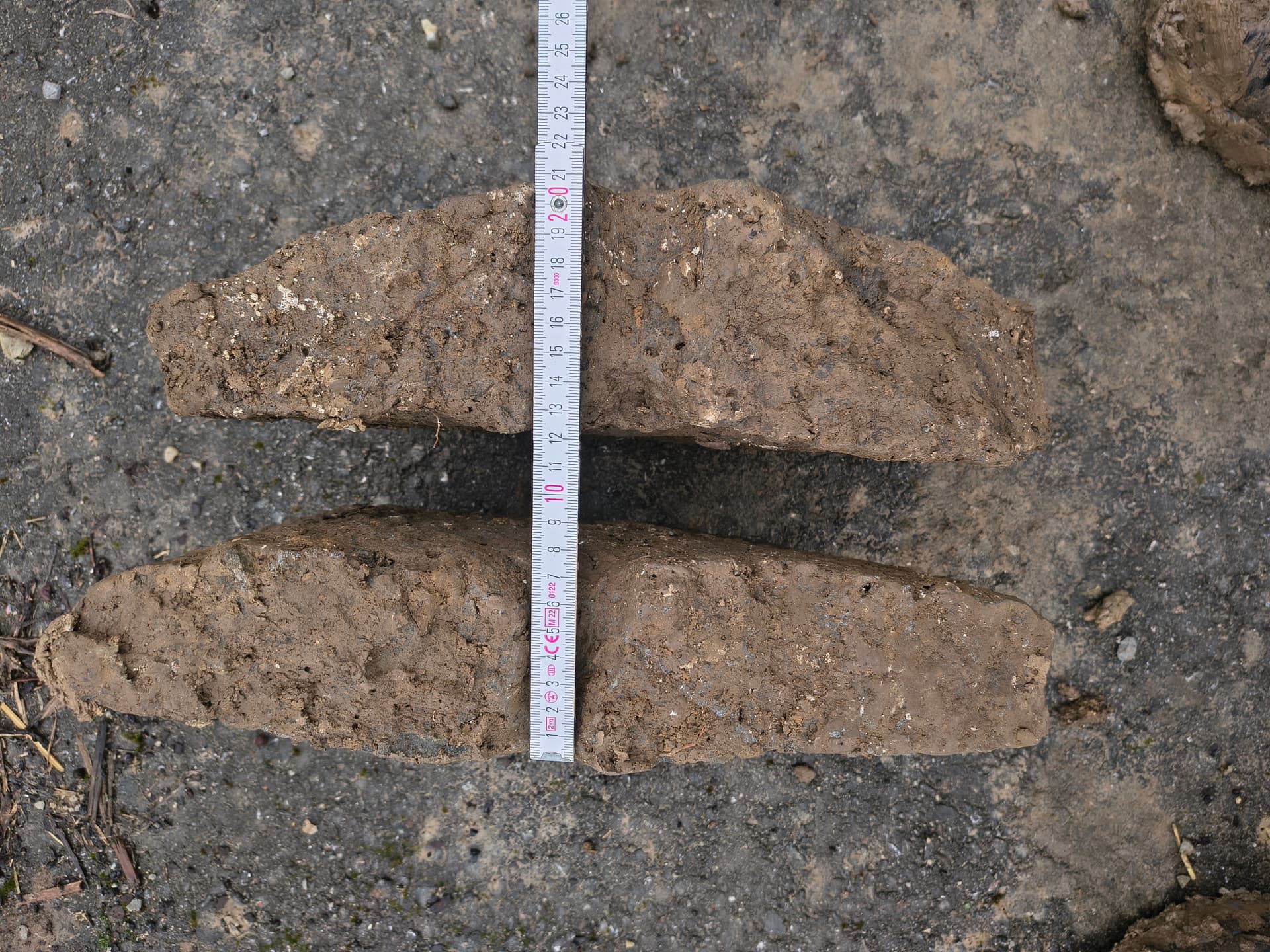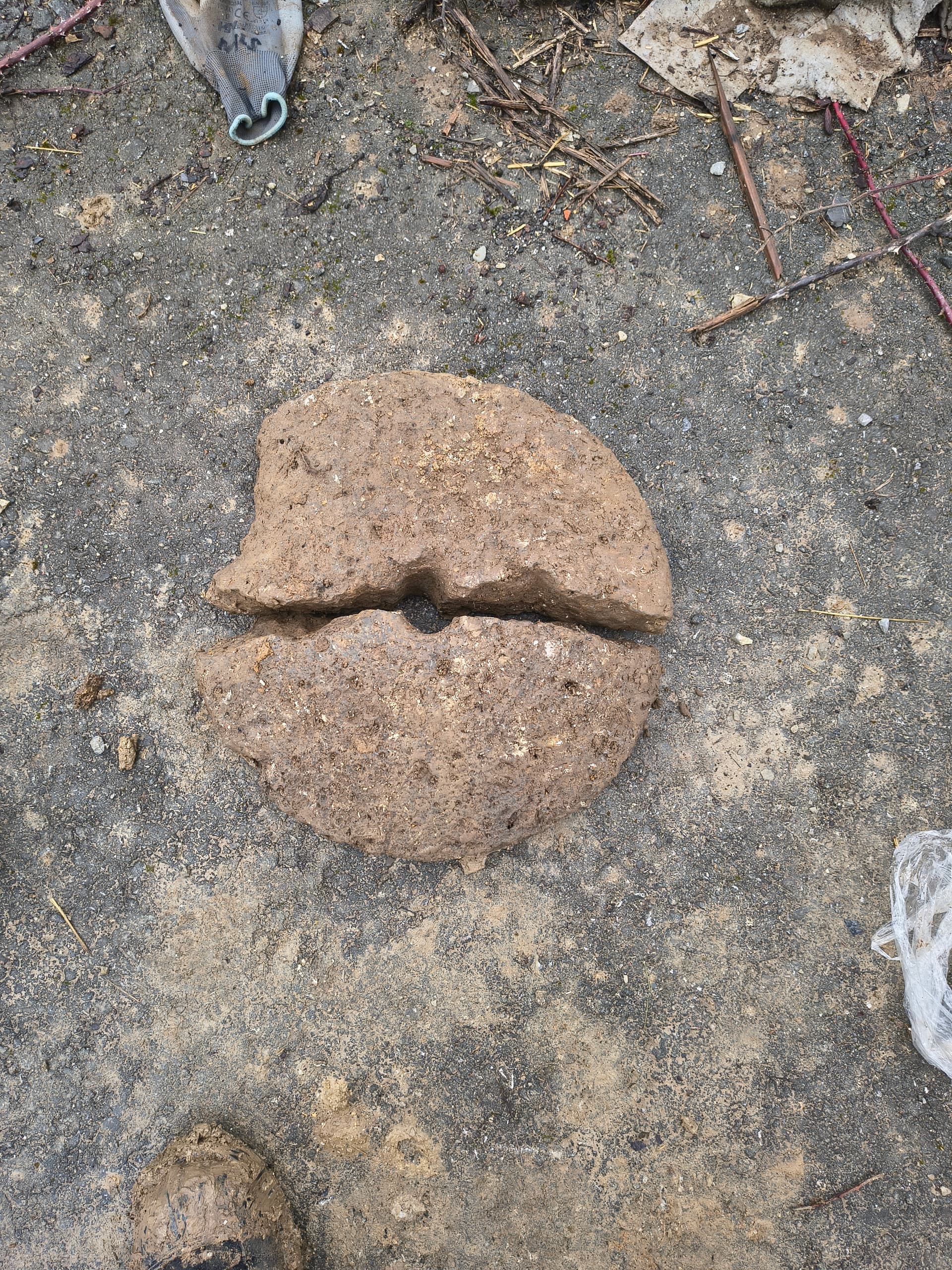 Gestern aus einer in den Kalkstein gehauenen Grube einen halben Mühlstein geborgen.