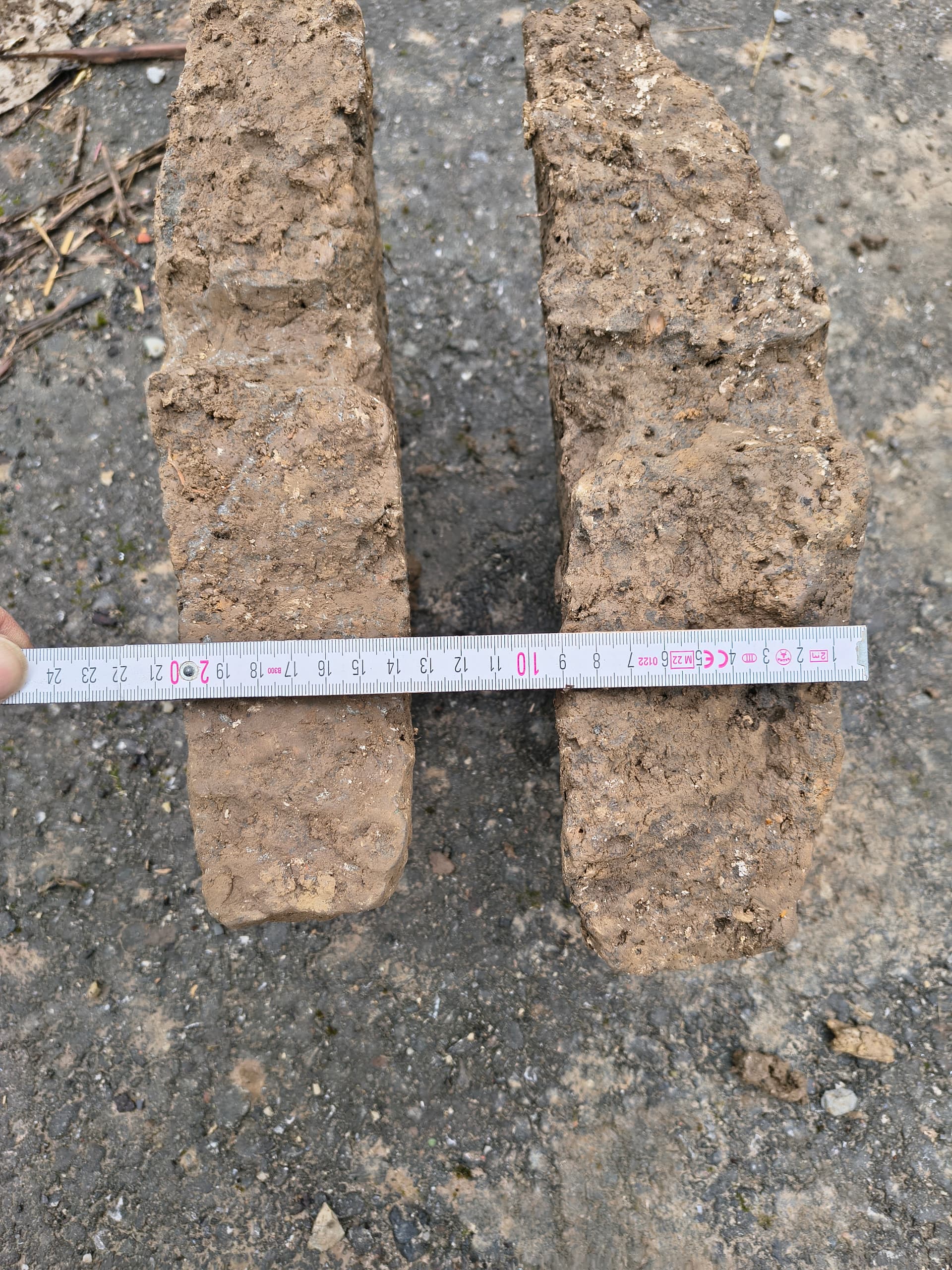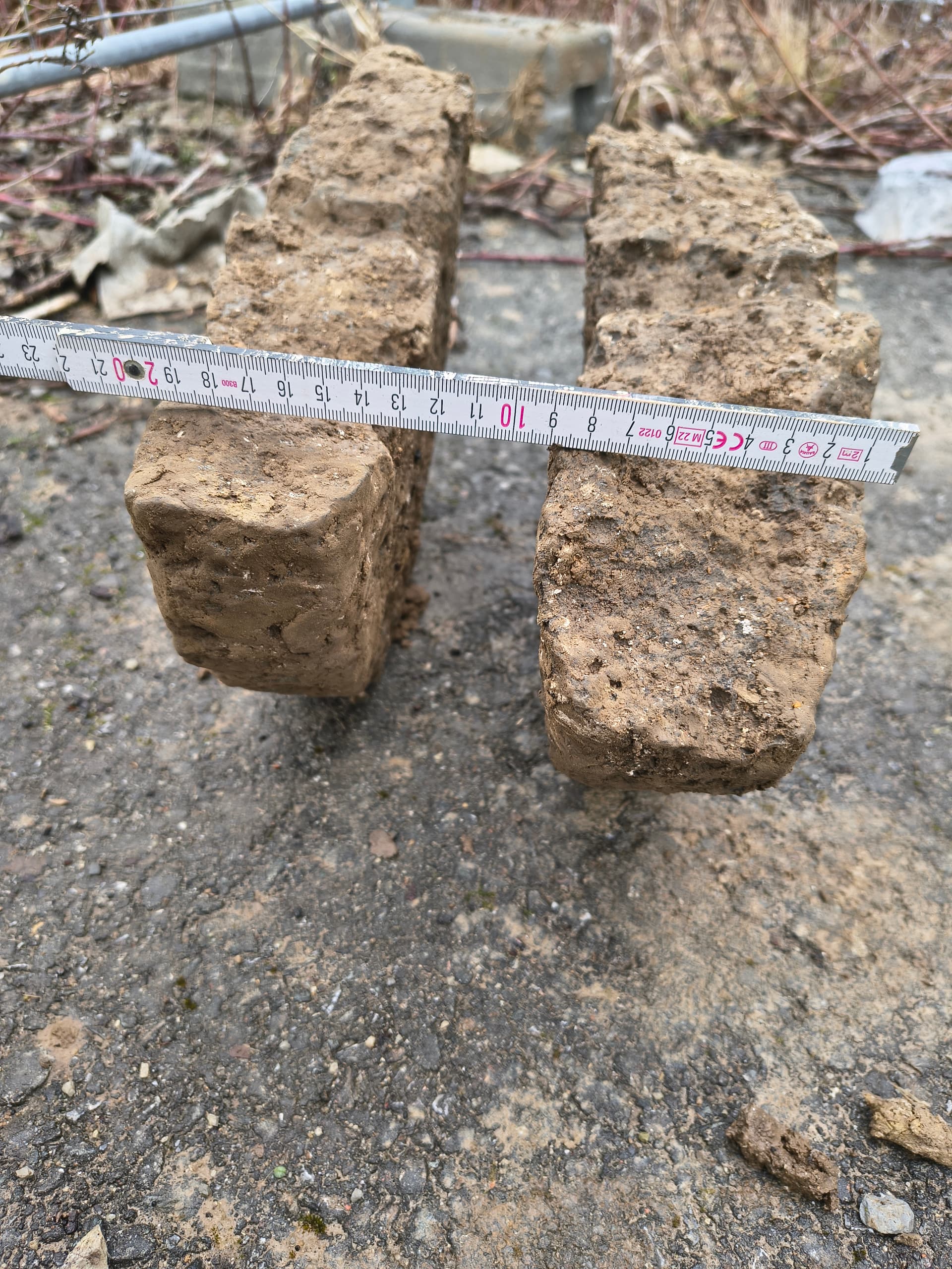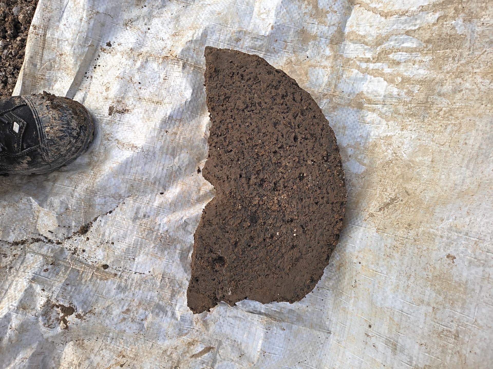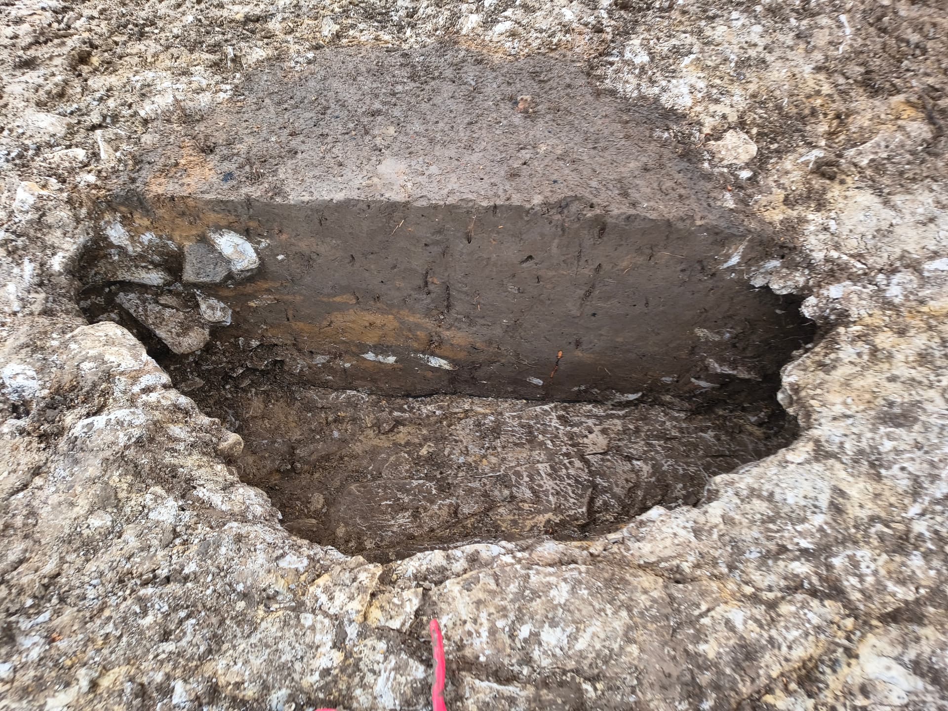 Gestern aus einer in den Kalkstein gehauenen Grube einen halben Mühlstein geborgen.