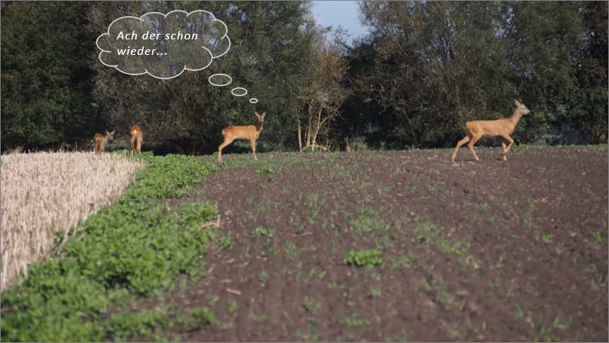 Und dann meinte er noch „die Rehe machen mehr kaputt als ich“.