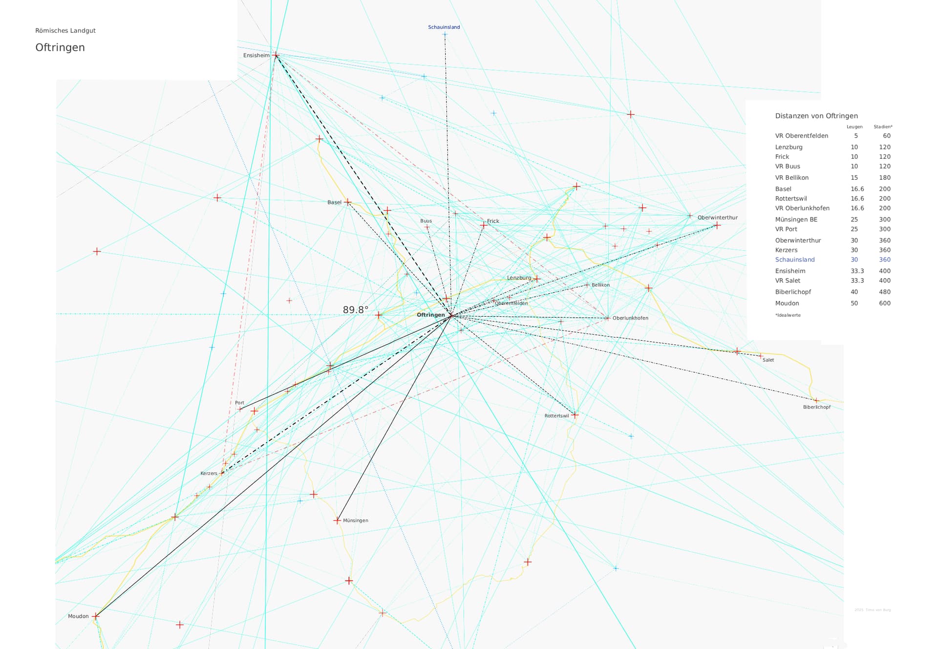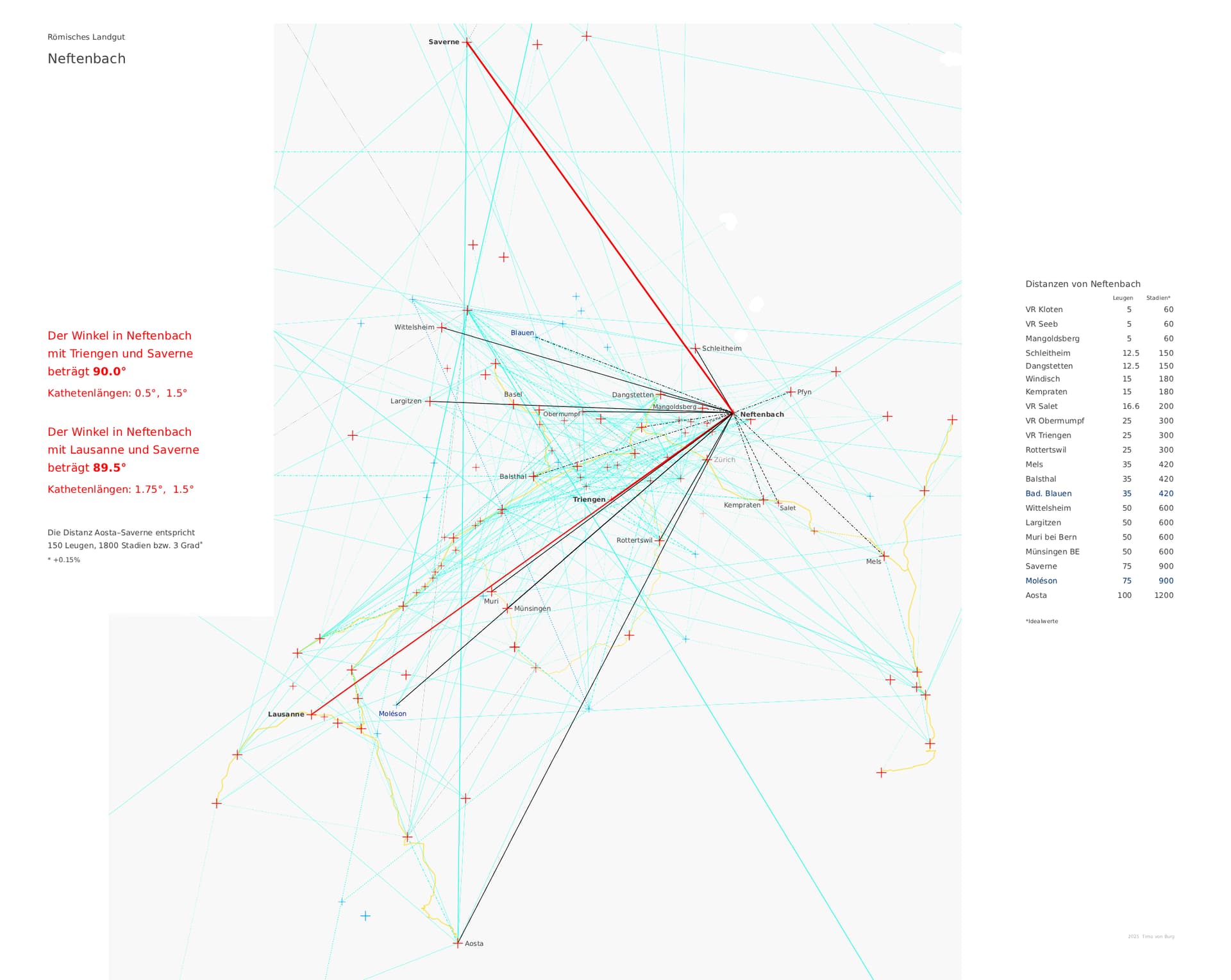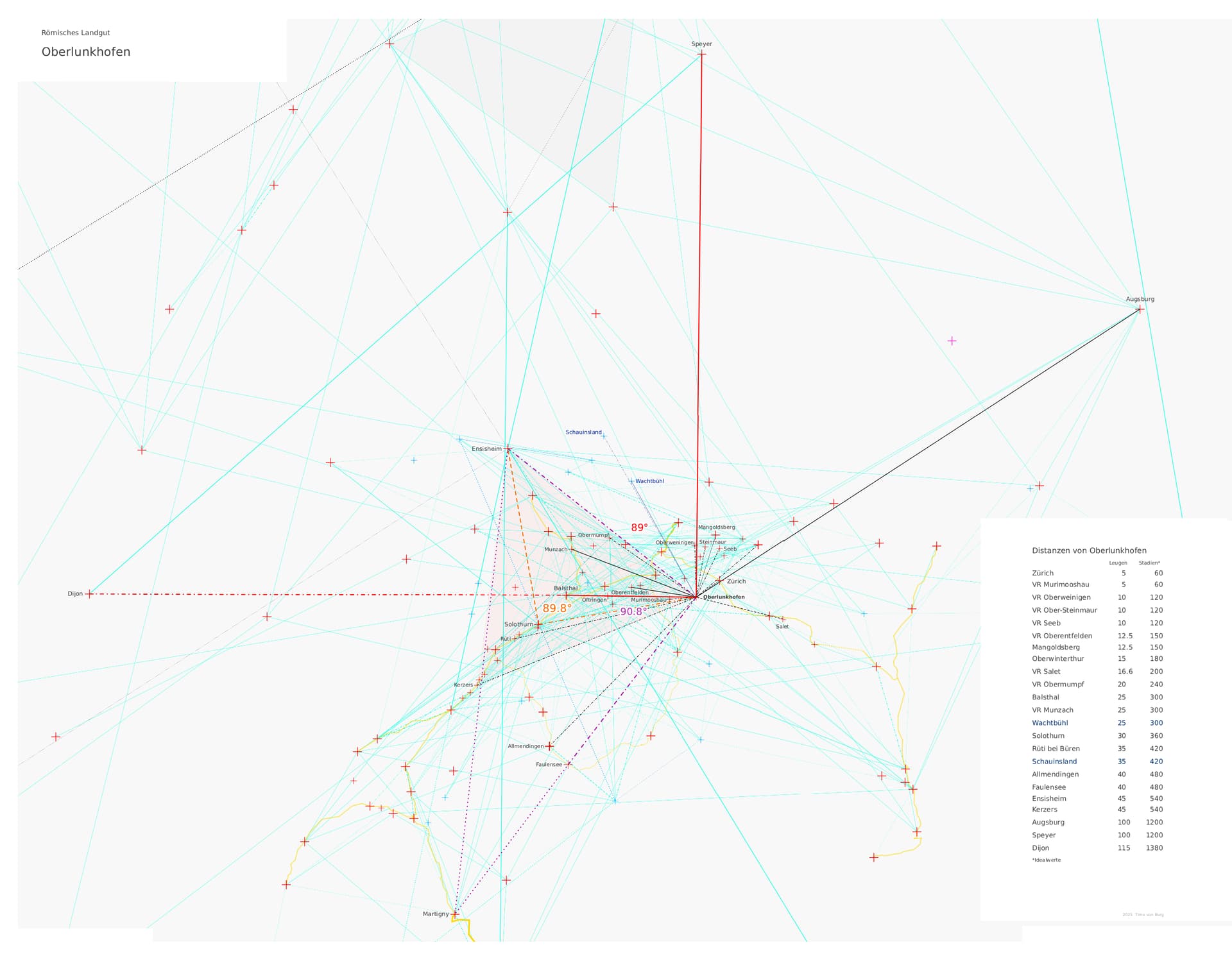 Wie wahrscheinlich es ist bei vielen irgendwie ausgewählten Orten zwangsläufig “glatte” Entfernungen und Winkel finden zu müssen wenn man danach sucht, bleibt die große Frage an einen erfahrenen Statistiker.