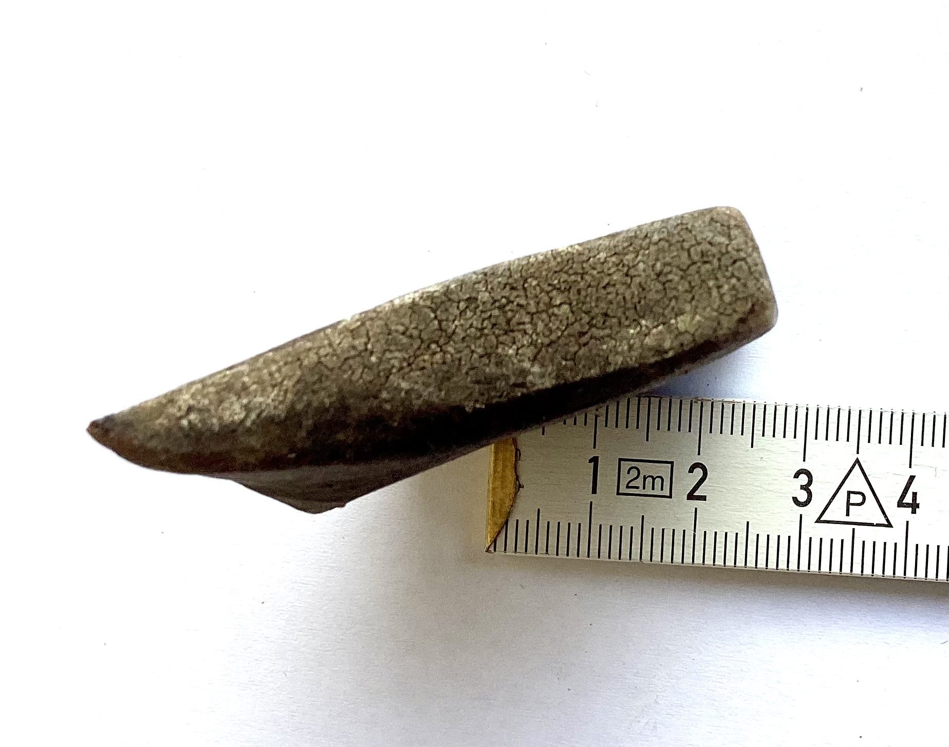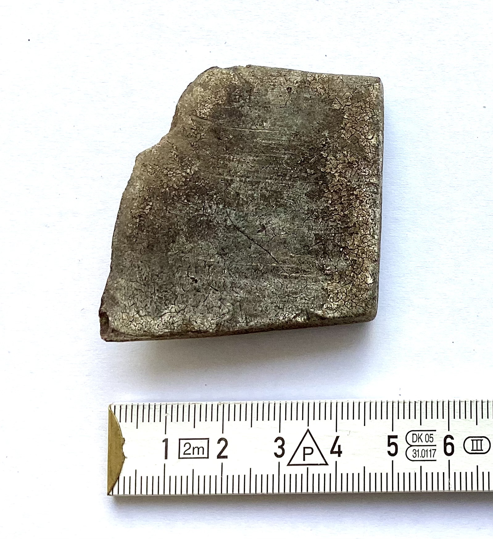 Die braune Scherbe ist 25g leicht und sieht aus wie Blockschokolade, die 1 Jahr über das MHD hinaus ist. (Ist aber keine Schokolade.) Die Oberflächen sind nicht sichtbar versiegelt worden.