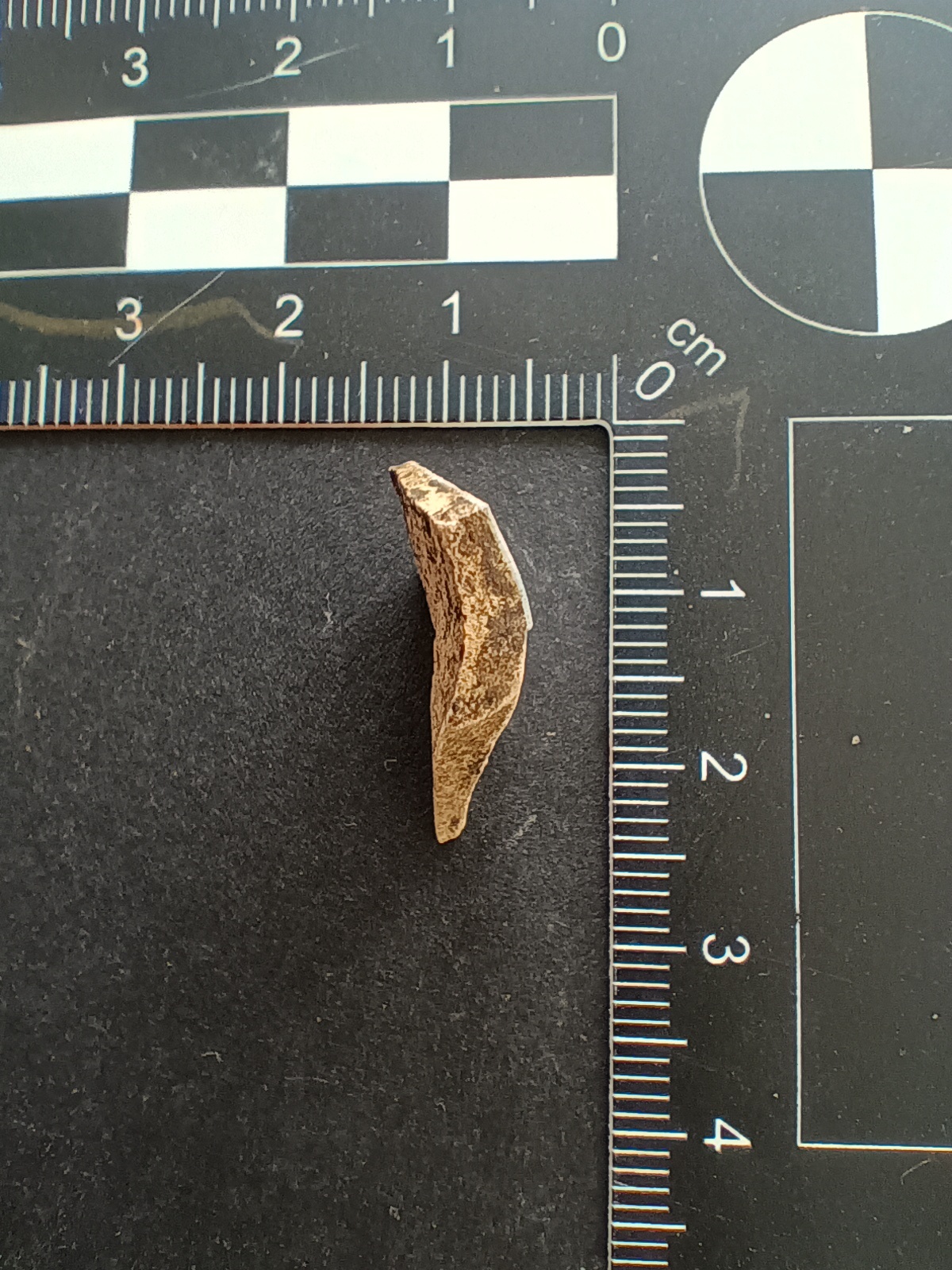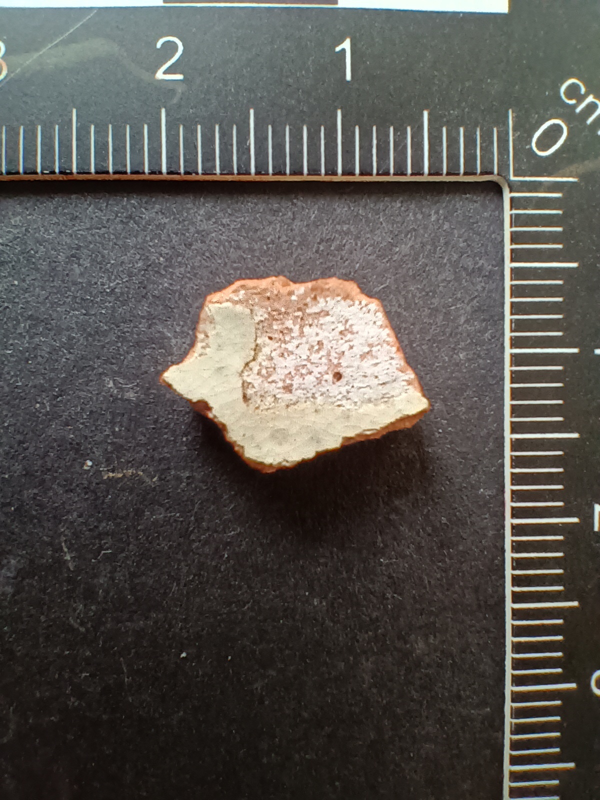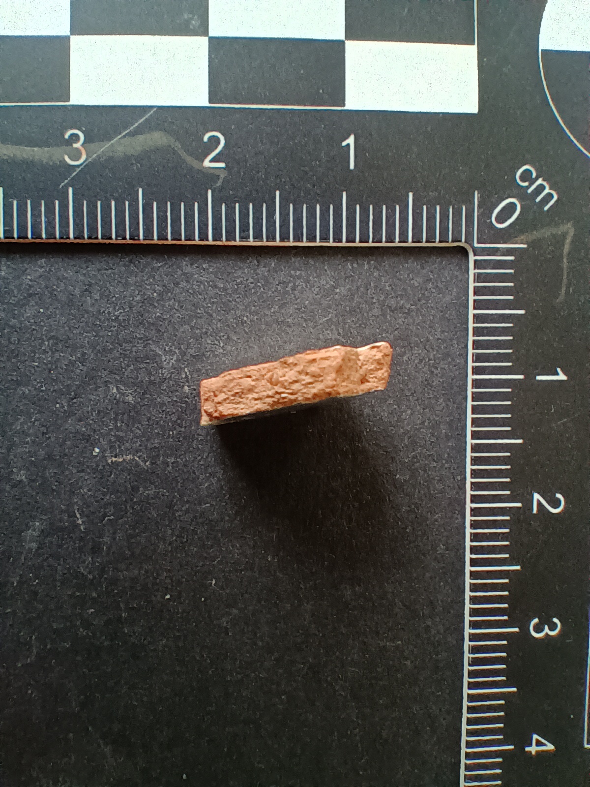 Das Fragment ist oxidierend hart gebrannt. Die Magerung ist sehr fein mit einigen Partikeln bis ein Millimeter. Glimmer ist relativ viel vorhanden, aber nur sehr fein.