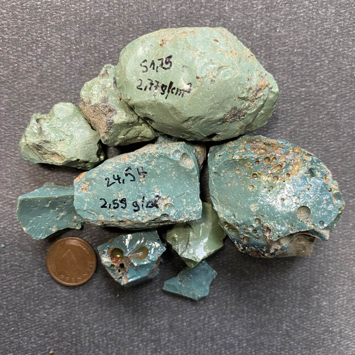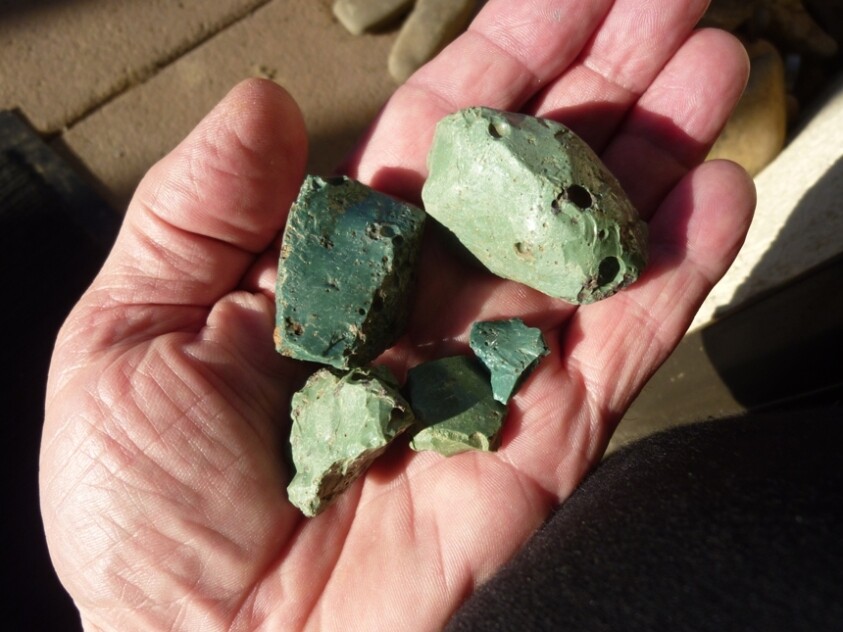 Die Brocken sind hart, können kaum mit Flint geritzt werden, ritzt aber