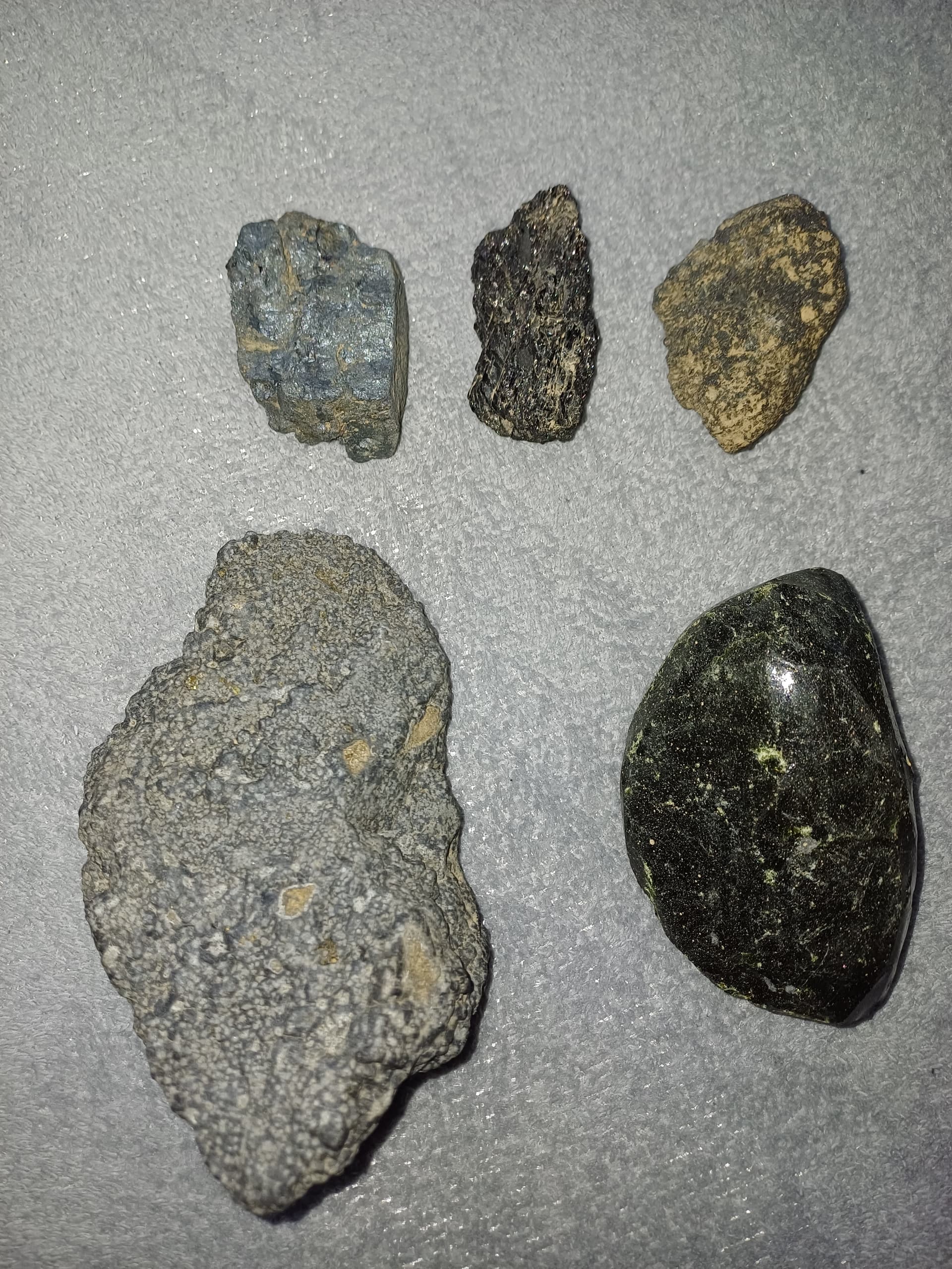 ist in dem Paket auch der Stein von oben (Dein vermuteter Meteorit) mit dabei - wenn ja, welcher ist es auf dem Foto mit den fünf Steinen?