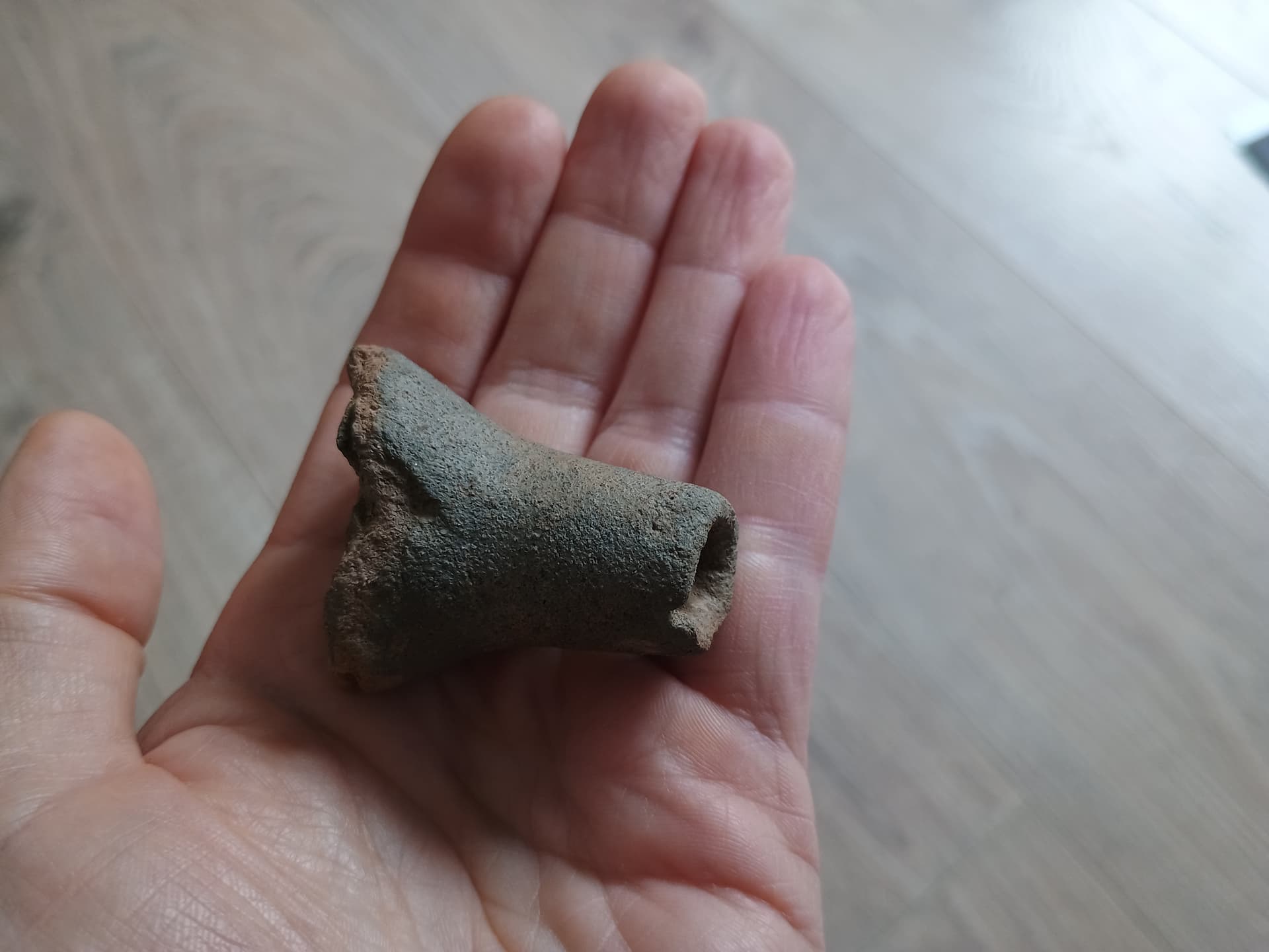 dürfte jetzt meine erste Grauware Tülle finden. Sie ist wunderbar erhalten. Das Stück ist reduzierend hart gebrannt und relativ fein gemagert (einzelne Partikel bis zu einem halben Millimeter). Glimmeranteil ist gering und fein (weniger Partikel sind größer).