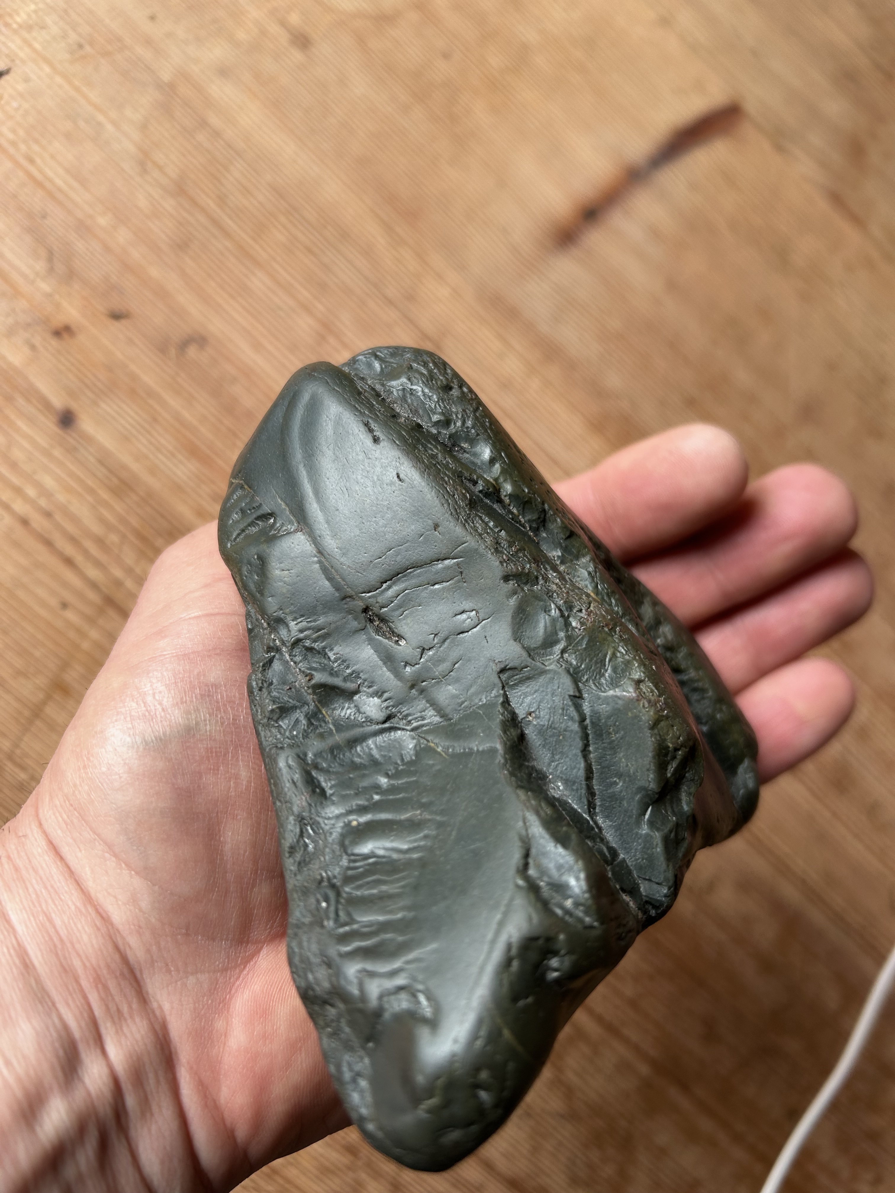 Bei dem zuerst gezeigten Stück handelt es sich um einen gebrochenen Kieselstein, alpinen Ursprungs. Das Material ist für ein steinzeitliches Werkzeug leider völlig ungeeignet, weil zu weich und nicht zielführend zu bearbeiten. Es fand dafür generell keine Verwendung, im Paläolithikum statt. Es sind daran auch keinerlei menschliche Bearbeitungshinweise erkennbar.