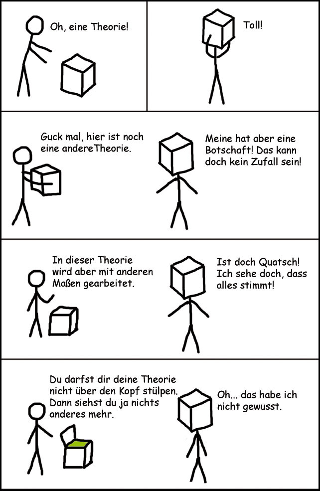 Ich werde mir keine Theorie über den Kopf stülpen; denn es gibt etwas, dass mir eindeutig sagt, dass alles stimmig ist und so würde es sicherlich in einen Würfel mit quadratischen Grundfläche passen.