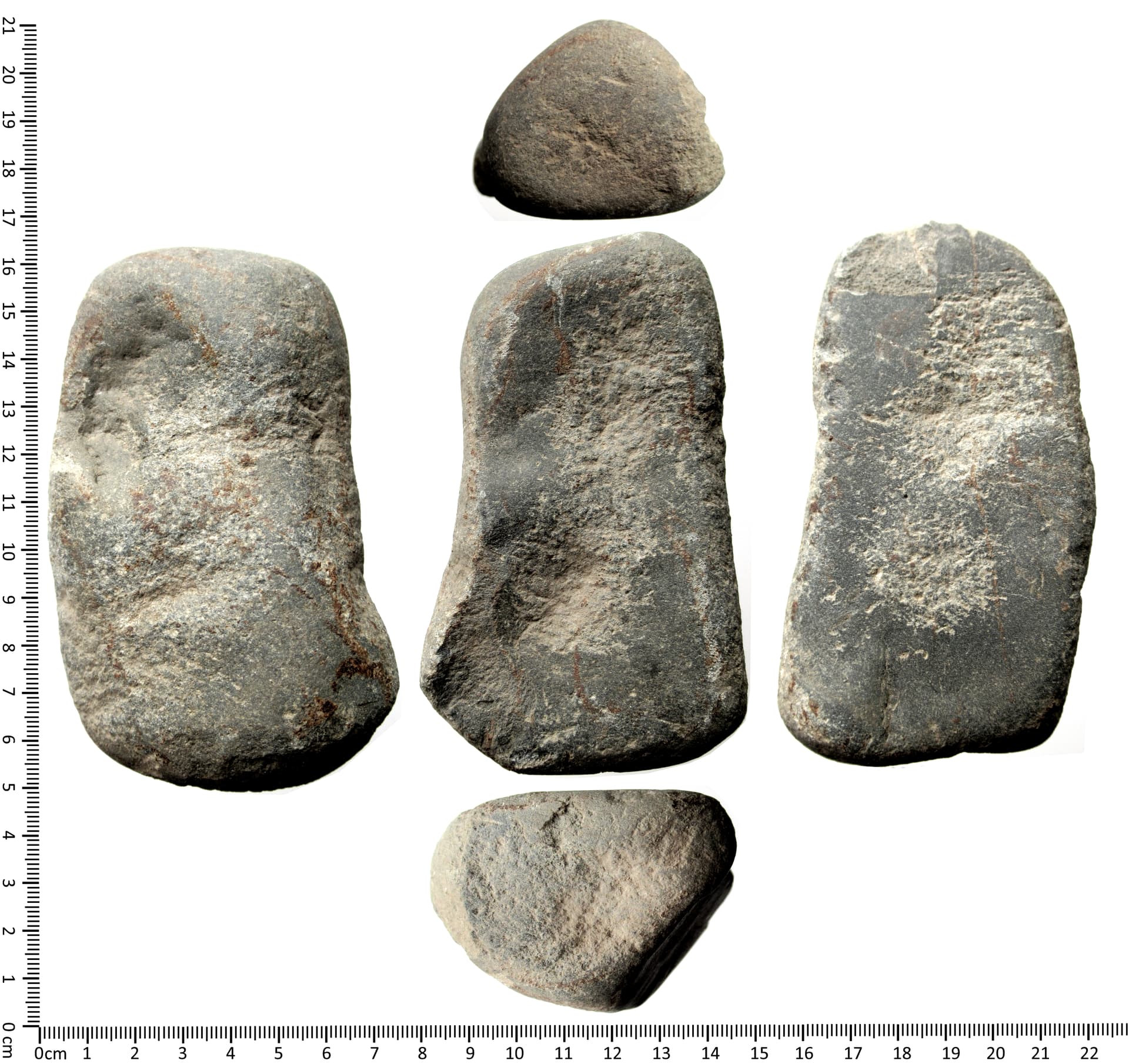Auch die Flächen zeigen Nutzungsflächen, die entweder zum Retuschieren oder als Auflage, also eine Art Amboss, genutzt wurden. Es sind teilweise richtige Kuhlen und jeweils zwei euf zwei Flächen.